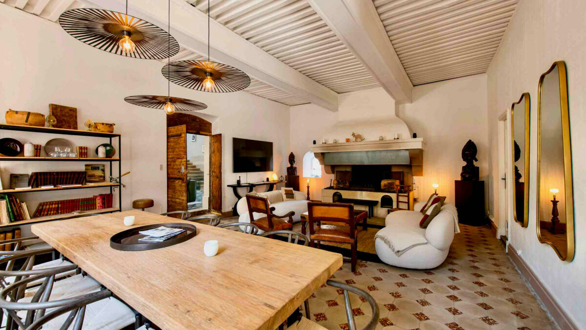 L’intérieur de la villa est un mélange harmonieux de charme historique et de modernité. Le salon, avec sa grande cheminée, est l’endroit idéal pour se détendre ou partager des moments conviviaux. La salle à manger attenante et la majestueuse véranda offrent des espaces de repas à l’atmosphère très conviviale.