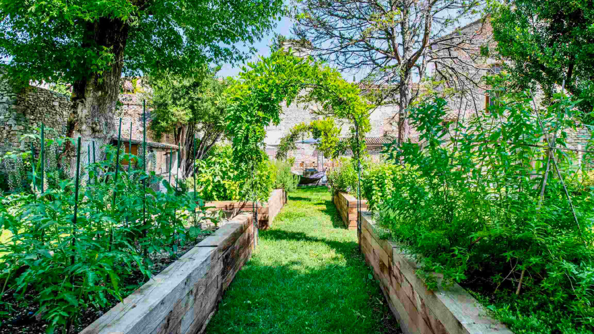 L’extérieur deu Mas de la Chapelle est un véritable écrin de verdure et de sérénité. La piscine chauffée de 12m x 5m, dotée d’un volet roulant et d’une alarme, invite à la détente. À proximité, le jacuzzi et le sauna promettent des moments de relaxation intense. La terrasse, le salon extérieur et le potager ajoutent à l’atmosphère bucolique de la cour. Que ce soit pour un bain de soleil, un moment de lecture ou un dîner en plein air, chaque coin de l’extérieur est conçu pour le plaisir des sens.