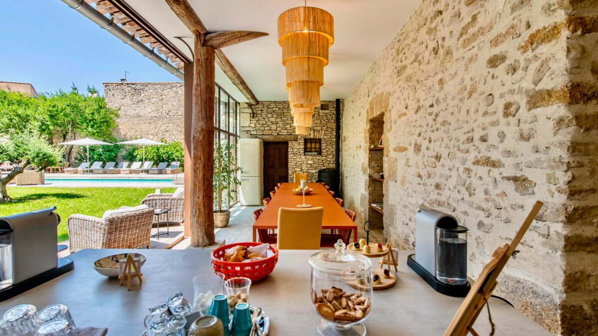 Vous trouverez dans la maison également un espace de fitness et un lieu pour déguster vos petits déjeuners sous une somptueuse verrière face au jardin et à la piscine.