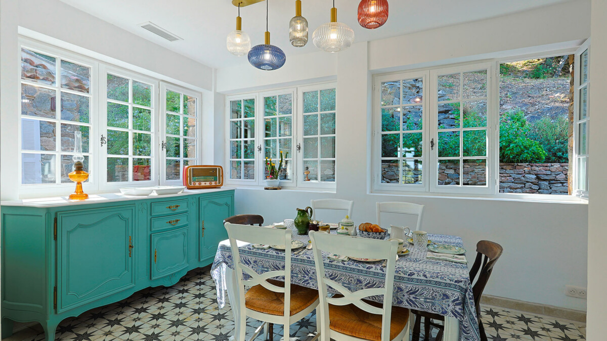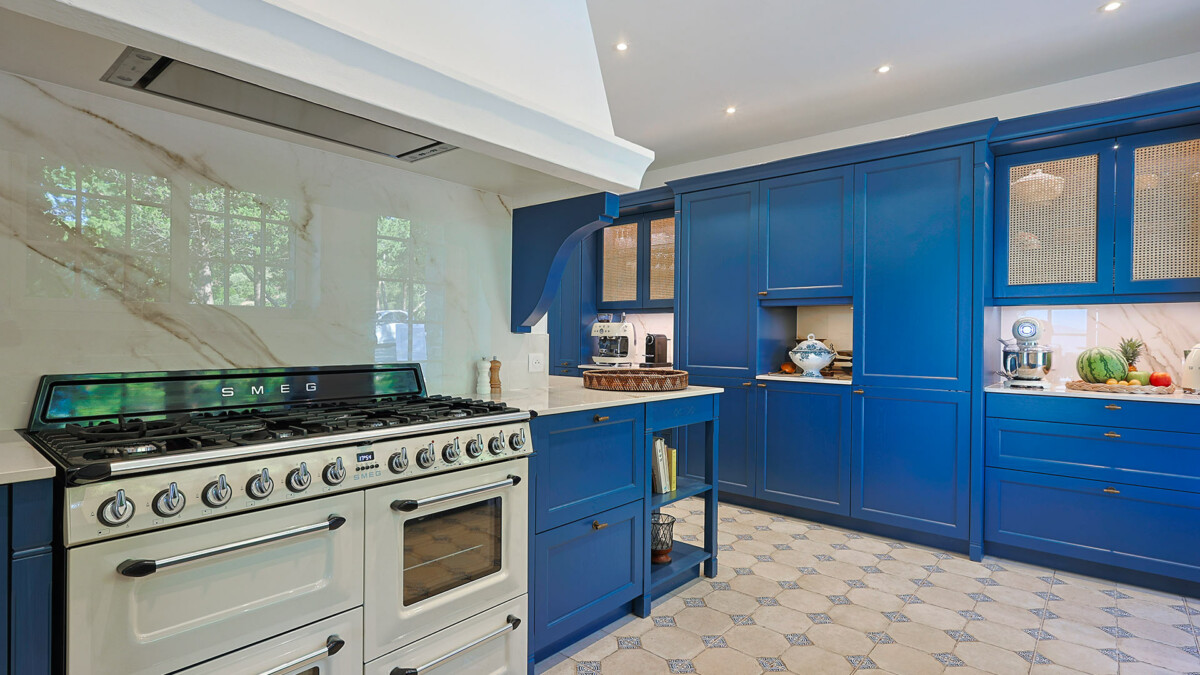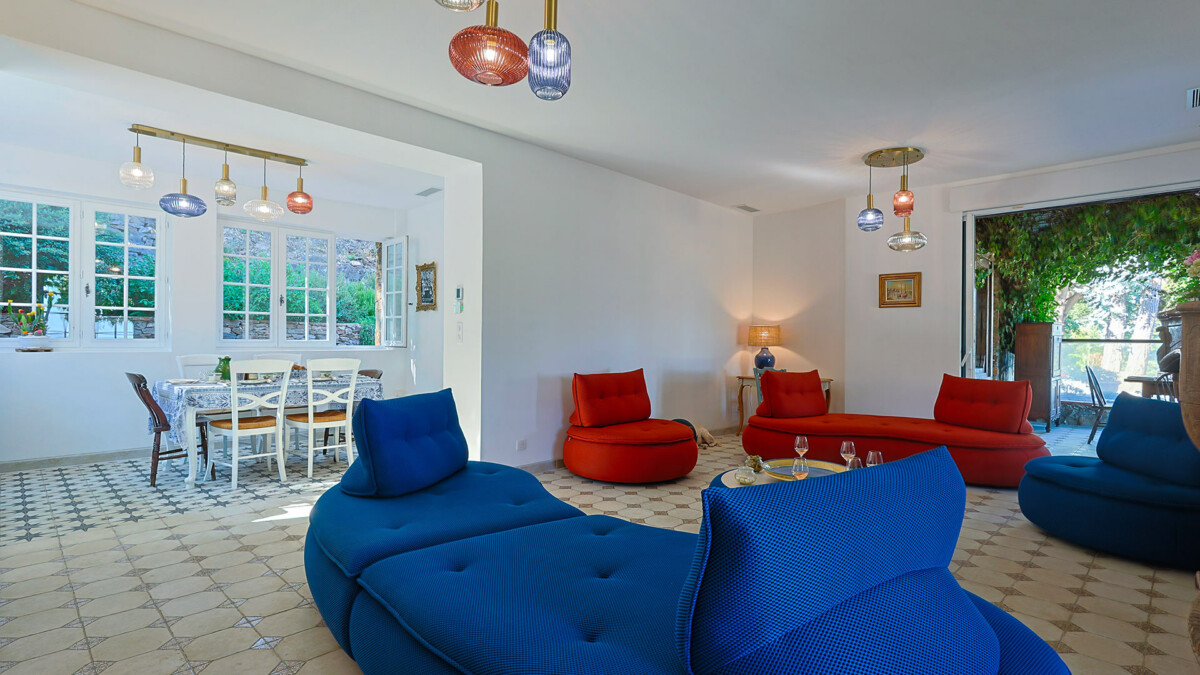 L’intérieur se veut à la fois chaleureux et raffiné. Le salon lumineux est doté de canapés ajustables et d’une télévision motorisée discrètement intégrée. La grande cuisine, parfaitement équipée, s’ouvre sur une salle à manger conviviale pour dix convives. Matériaux nobles, faïences italiennes, décoration soignée : chaque détail reflète le chic provençal dans une ambiance apaisante.
