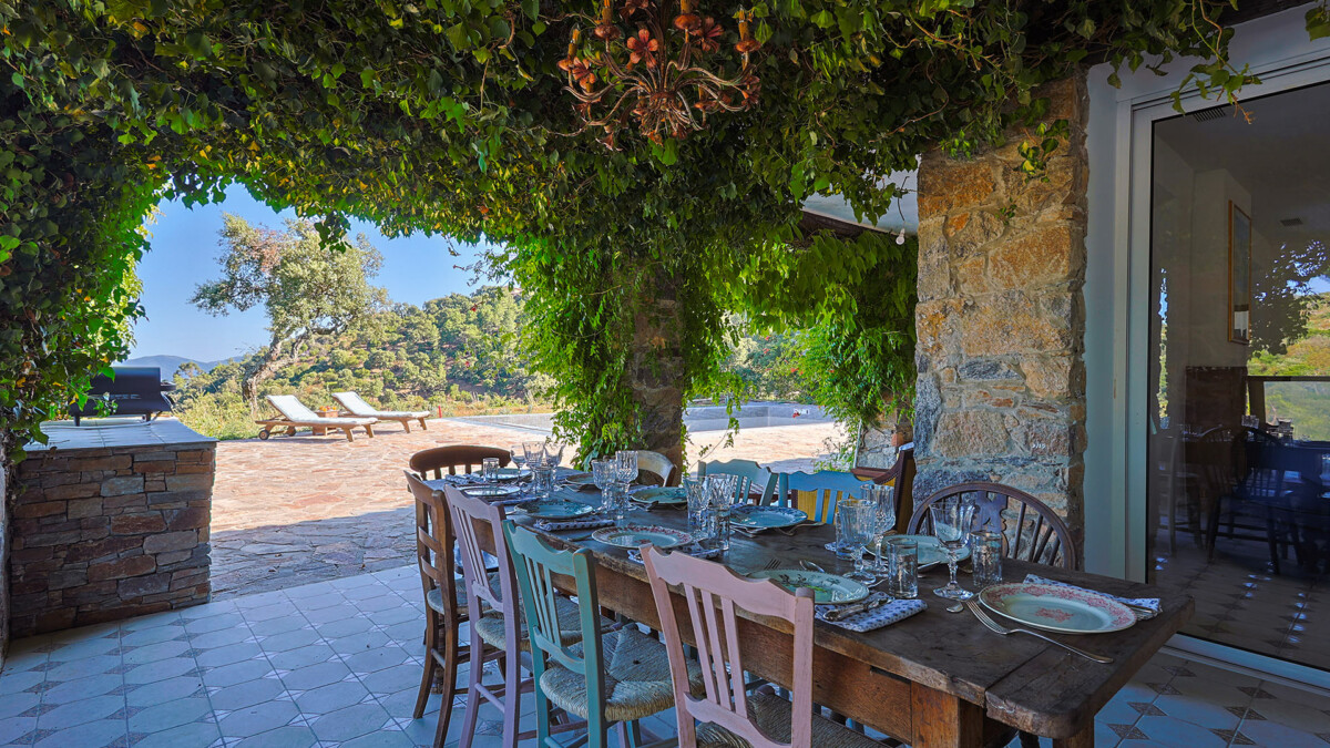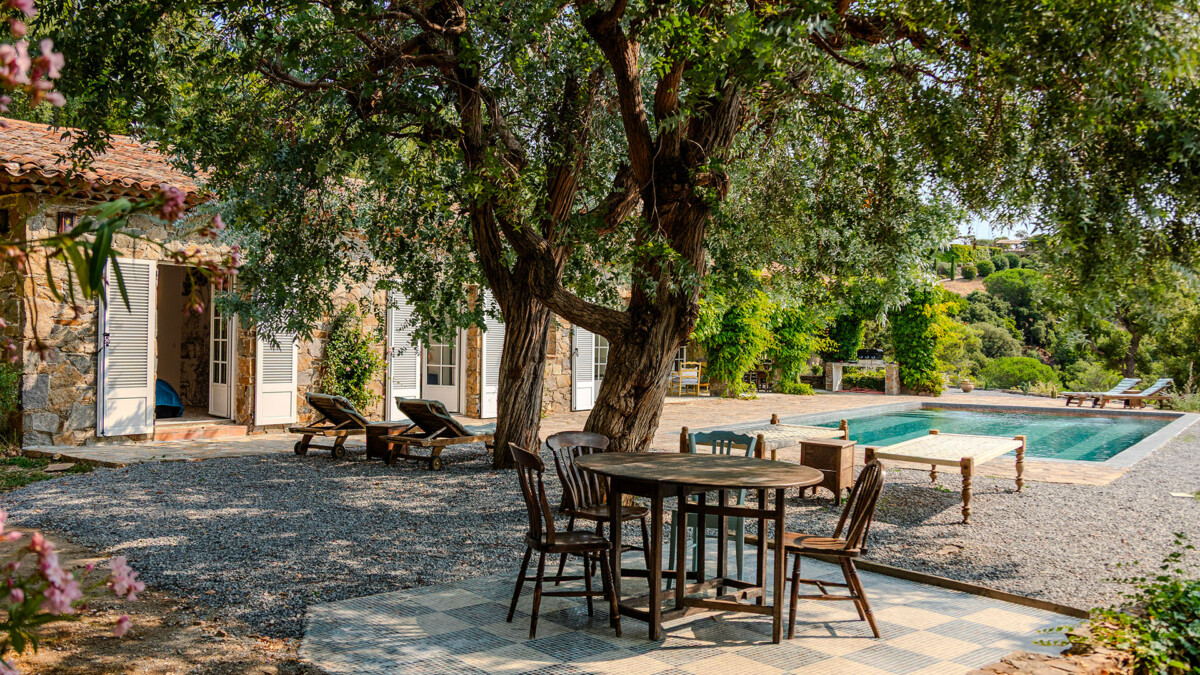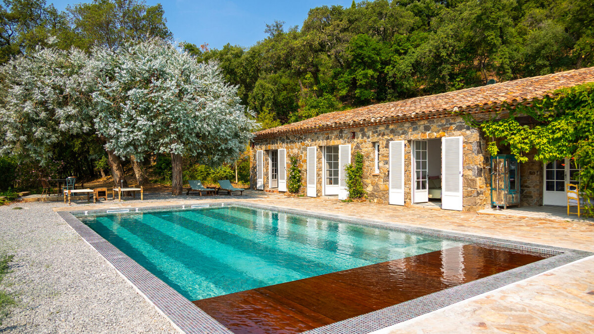La vie se poursuit en plein air, entre la superbe piscine chauffée* (de 12 x 6m – Profondeur : 1.5 à 1.6m), un sauna pour la détente, un court de tennis multi-sports (volley, badminton, basket), un terrain de pétanque ombragé et une table de ping-pong. La terrasse sous la vigne invite aux repas d’été face à un panorama grandiose, tandis que le parc arboré d’un hectare assure intimité et dépaysement total. Profitez également d’une vue mer lointaine côté St Tropez, Ramatuelle, Gassin et La Croix Valmer.