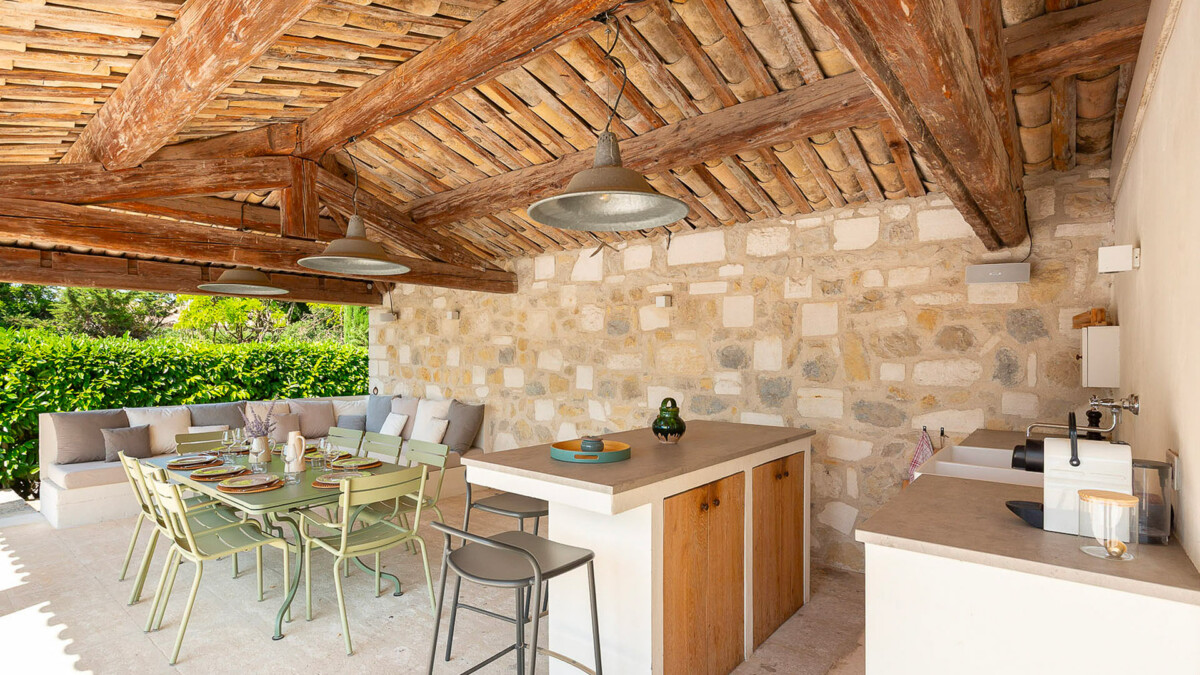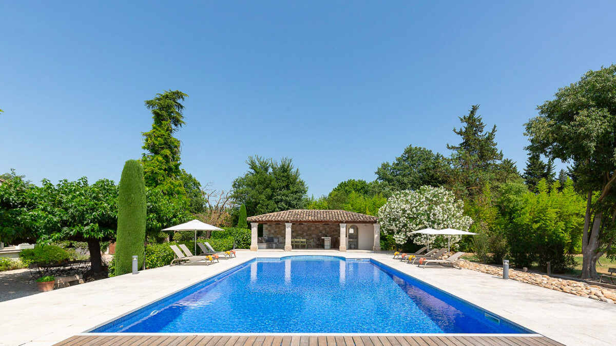 Au sud, trois terrasses offrent des ambiances variées : salon extérieur cosy, grande table sous mûrier-platanier pour 10, espaces de farniente. Côté piscine, vous apprécierez la piscine chauffée* (15x7m – Profondeur : 1.1 – 2.4m) avec volet, le pool house équipé (cuisine d’été, bar, salon, table pour 12), la zone barbecue/plancha et un terrain de pétanque convivial. Le jardin d’1 hectare, planté d’oliviers et doté d’un petit étang, procure un sentiment unique d’exclusivité et d’immersion dans la nature provençale. Parking ombragé (prise électrique) disponible.