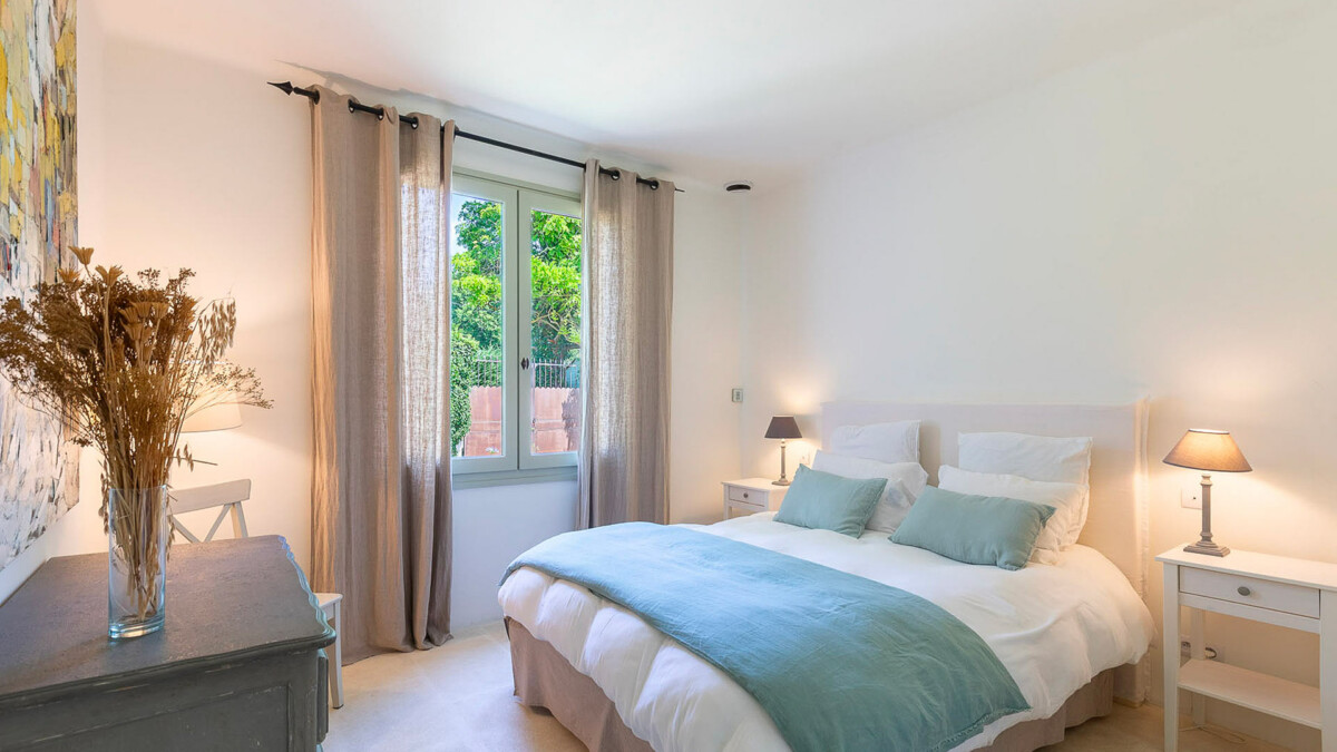 Le rez-de-chaussée offre 5 chambres, toutes avec leur salle d’eau privative, accès jardin ou terrasse. À l’étage, 2 chambres supplémentaires se partagent une salle de bain, avec un salon TV dédié. Literie haut de gamme, rangements et charme provençal authentique composent des espaces intimes, paisibles et résolument élégants.