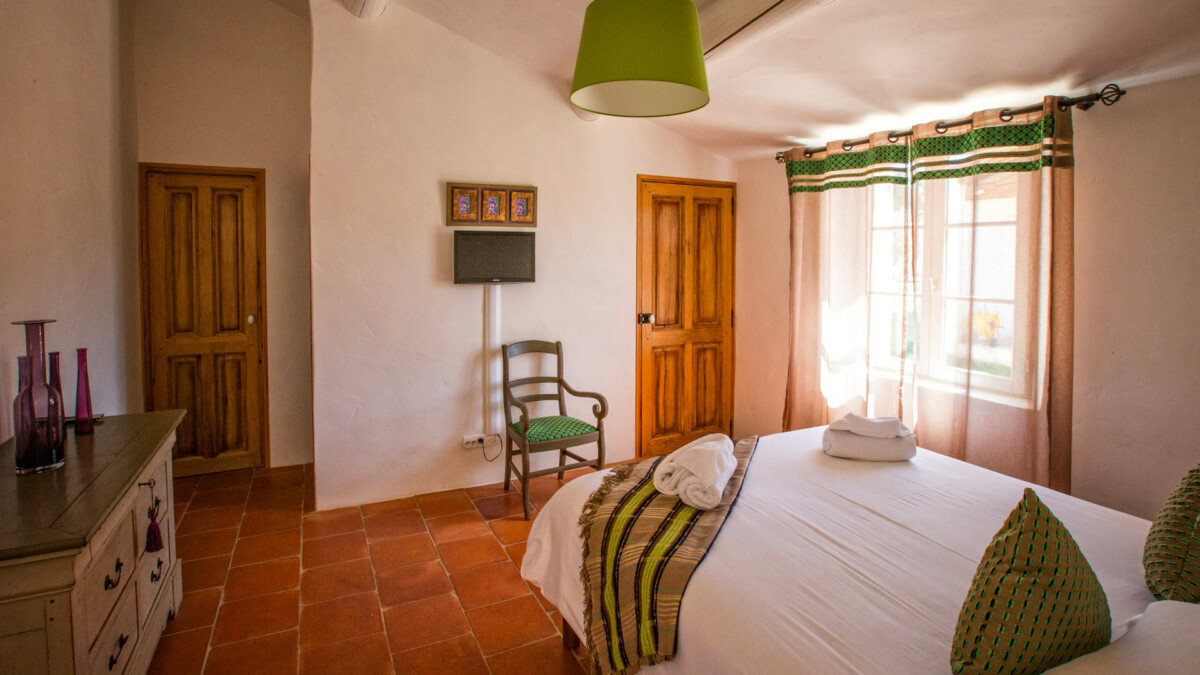 Chambre. La chambre propose 1 lit double 160 cm. Salle de bain privée, avec douche. WC séparés. La chambre inclut également : TV, terrasse privée, ventilateur.