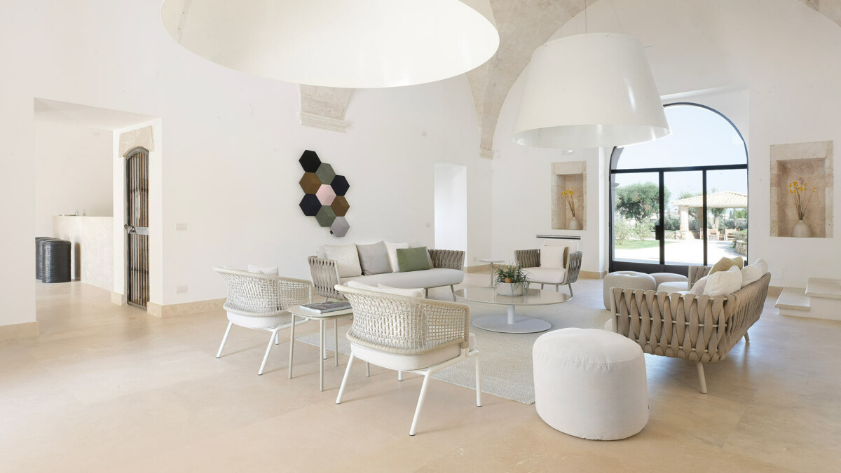 La villa est idéalement située dans les Pouilles, région d’Italie célèbre pour ses belles plages et ses eaux cristallines, les grottes de Castellana et Fasano, ou encore grâce à d’incroyables villages tels qu’Alberobello avec ses charmants trulli blanchis à la chaux qui bordent les rues.