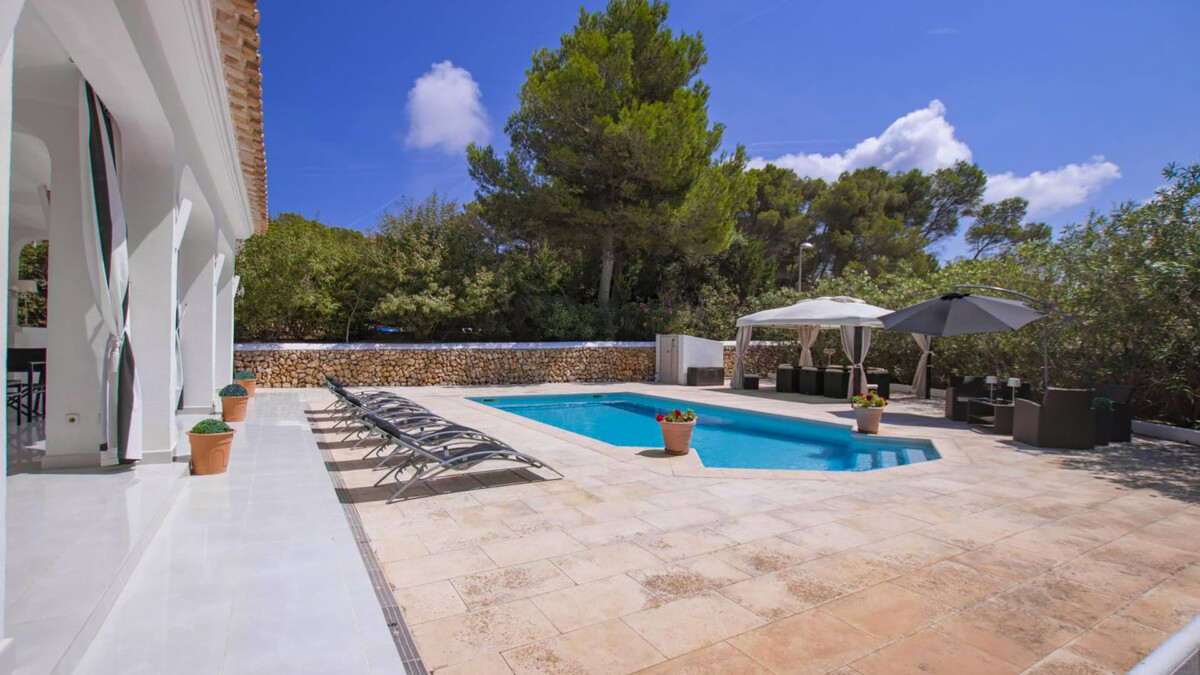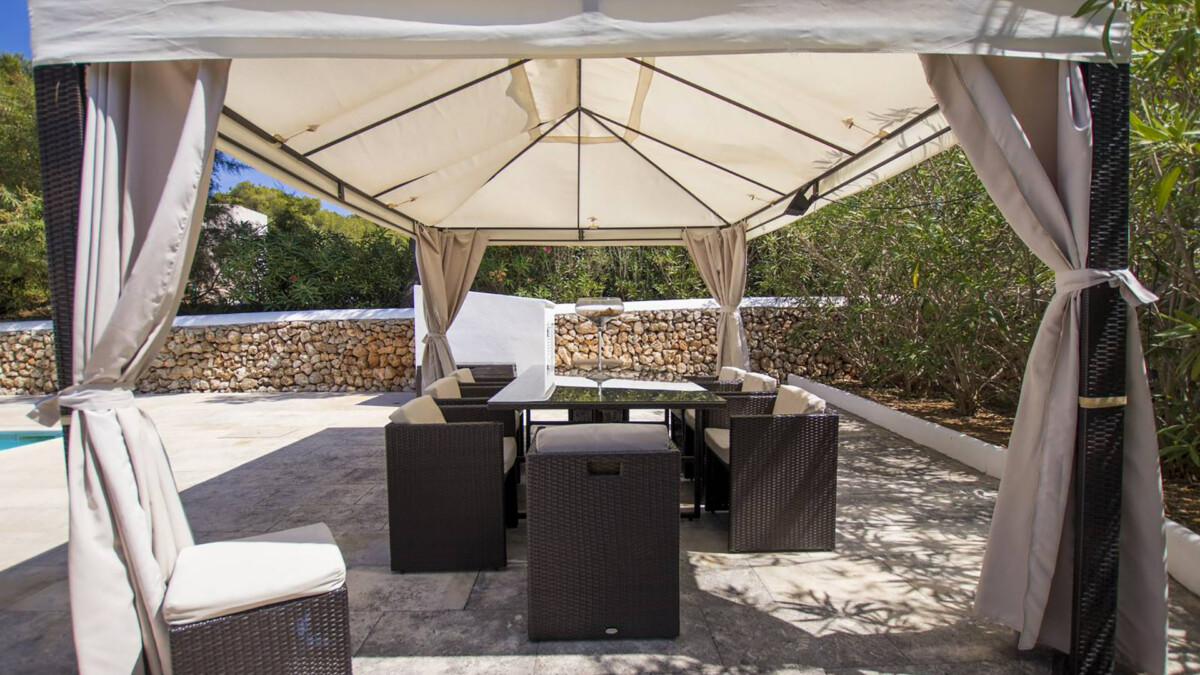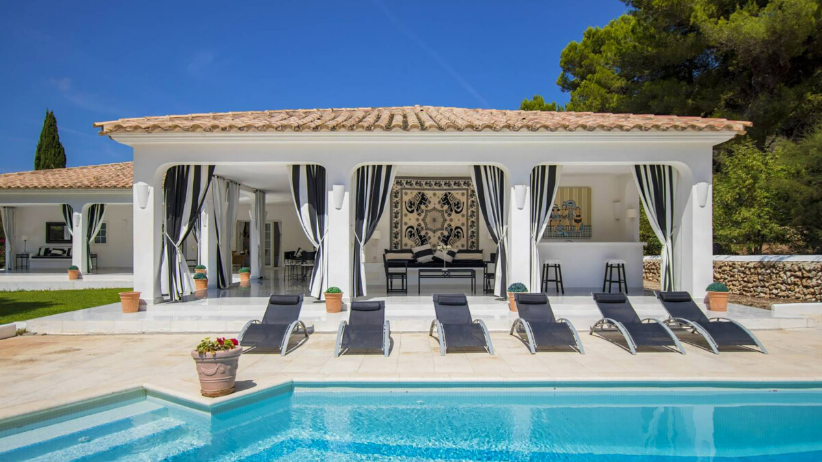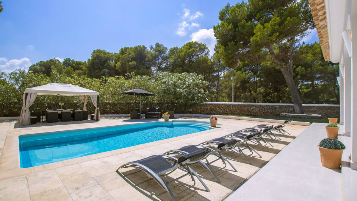 Grande maison de vacances, idéale pour accueillir une grande famille ou un groupe d’amis, située à 3 mn en voiture de l’unique Golf de Minorque et d’une grande plage. 2 terrasses couvertes vous accueillent pour différents moments de la journée : une avec barbecue et espace repas et une autre très grande avec plusieurs lieux de repos et un bar extérieur. Vous pourrez profiter d’une grande piscine et prendre le soleil sur les chaises longues tout en sirotant un verre au doux son des oiseaux. Venez profitez de la douceur de vivre de Minorque !
