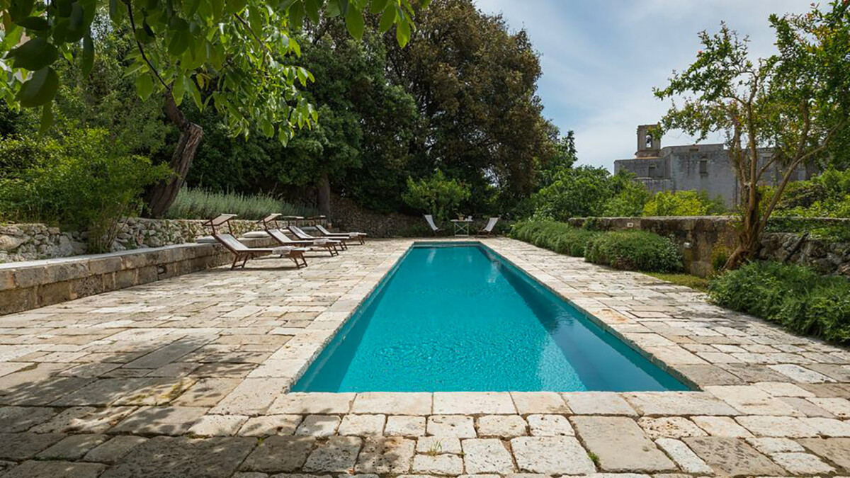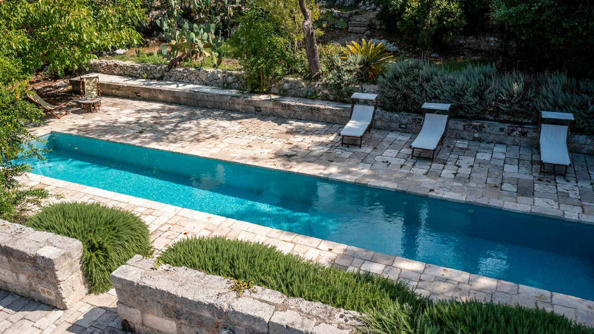 La piscine mesure 15,00 x 2,5 mètres et profondeur 1,60 mètres. Elle est située en hauteur par rapport au jardin et offre une belle vue sur les églises et places principales.