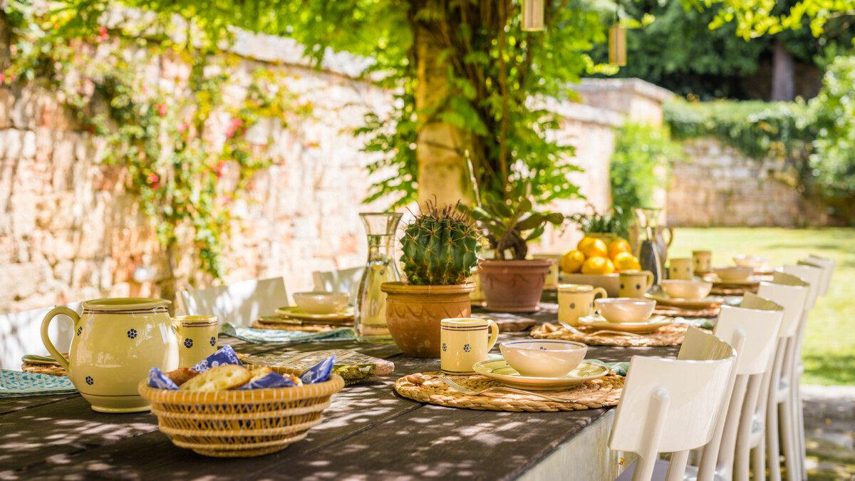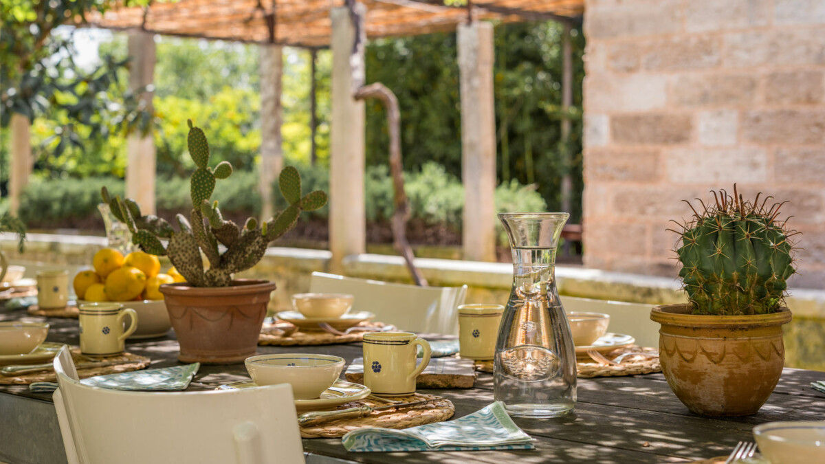 Il y a une table à manger intérieure pour 12 personnes et une table à manger extérieure sous la pergola pour 14 personnes.