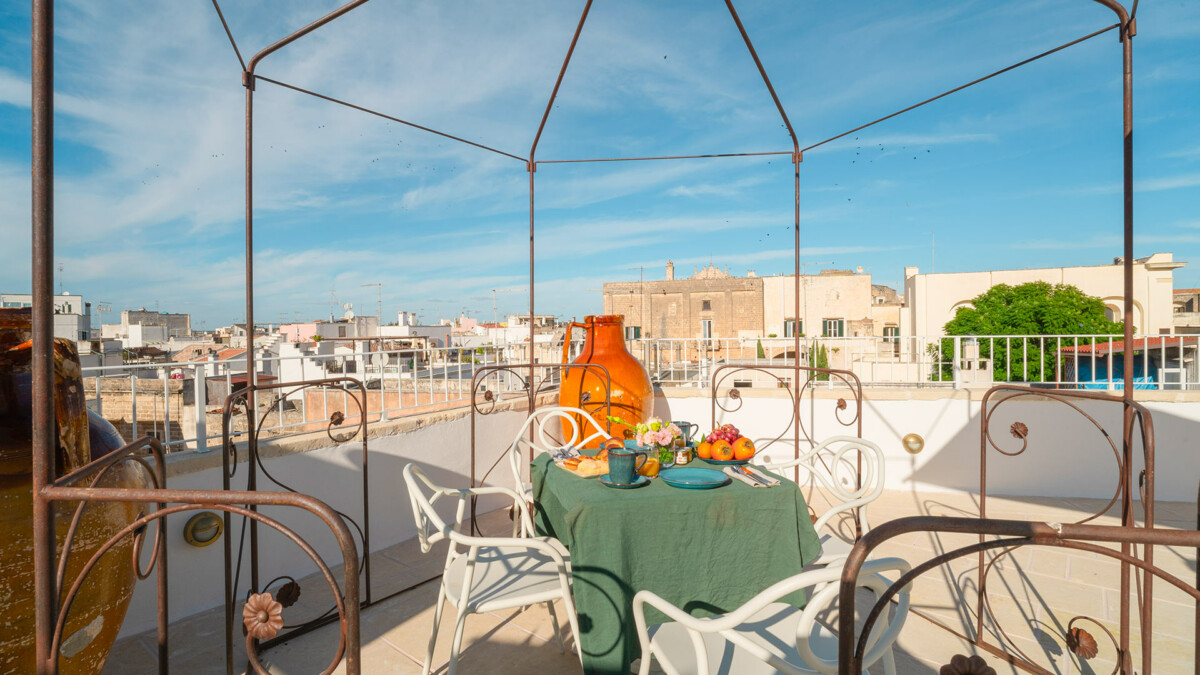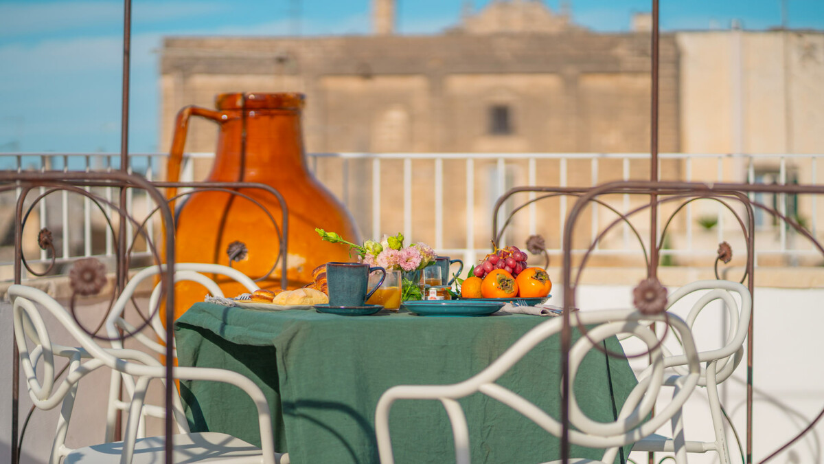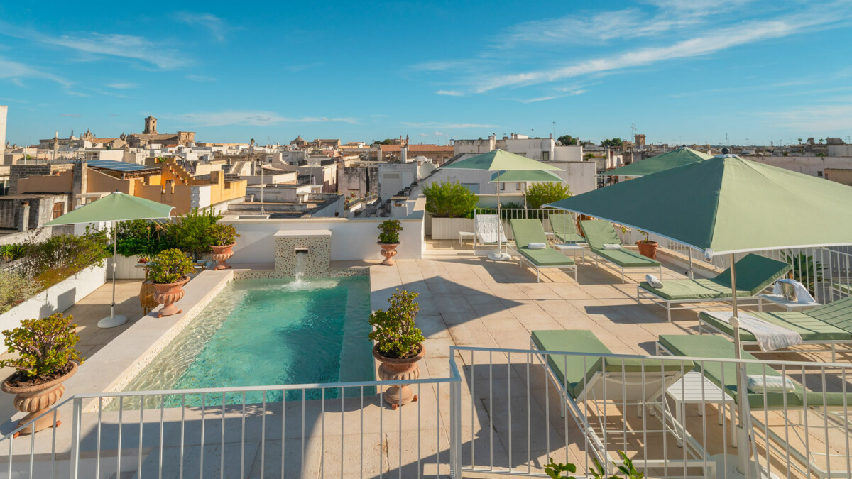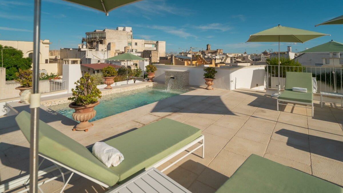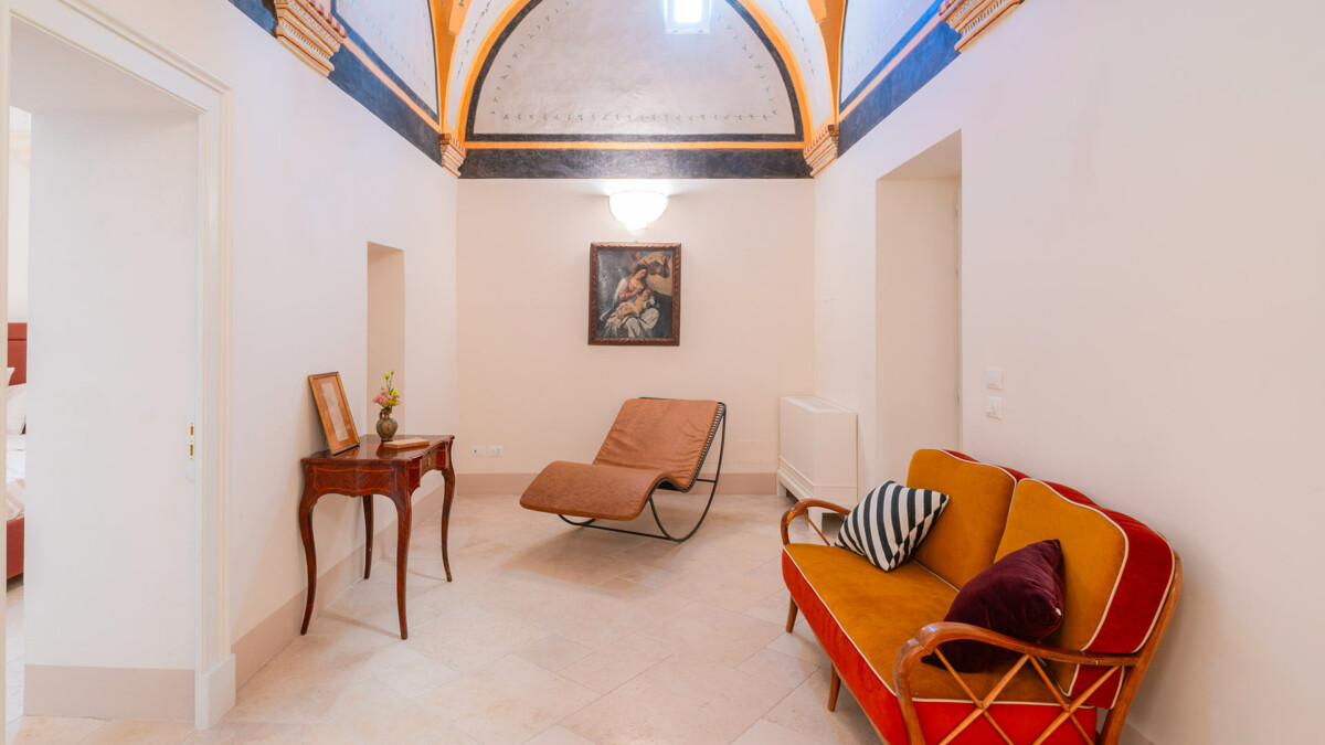 Le Palazzo Teo à Nardò est un magnifique palais chargé d’histoire, offrant une expérience de séjour unique et remplie de charme. Chaque recoin de ce palais restauré avec soin vous transporte dans le temps, créant ainsi des moments exceptionnels et inoubliables. Les suites, décorées avec des œuvres d’art sélectionnées par Katherina Marx, experte en art, racontent des histoires d’élégance et de tradition. Ce joyau d’élégance et d’histoire offre une expérience de luxe et de confort, avec ses six suites exclusives, son salon commun et sa terrasse offrant une vue imprenable. Le Palazzo est l’endroit idéal pour les amateurs d’art, d’histoire et de tranquillité.
