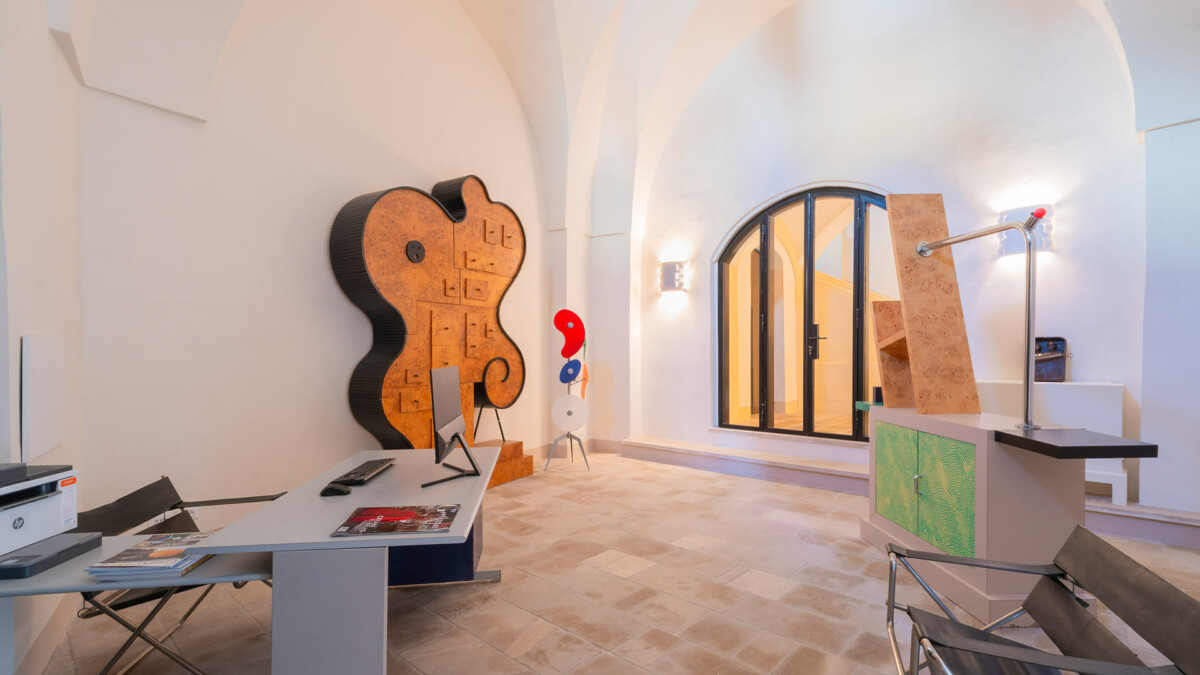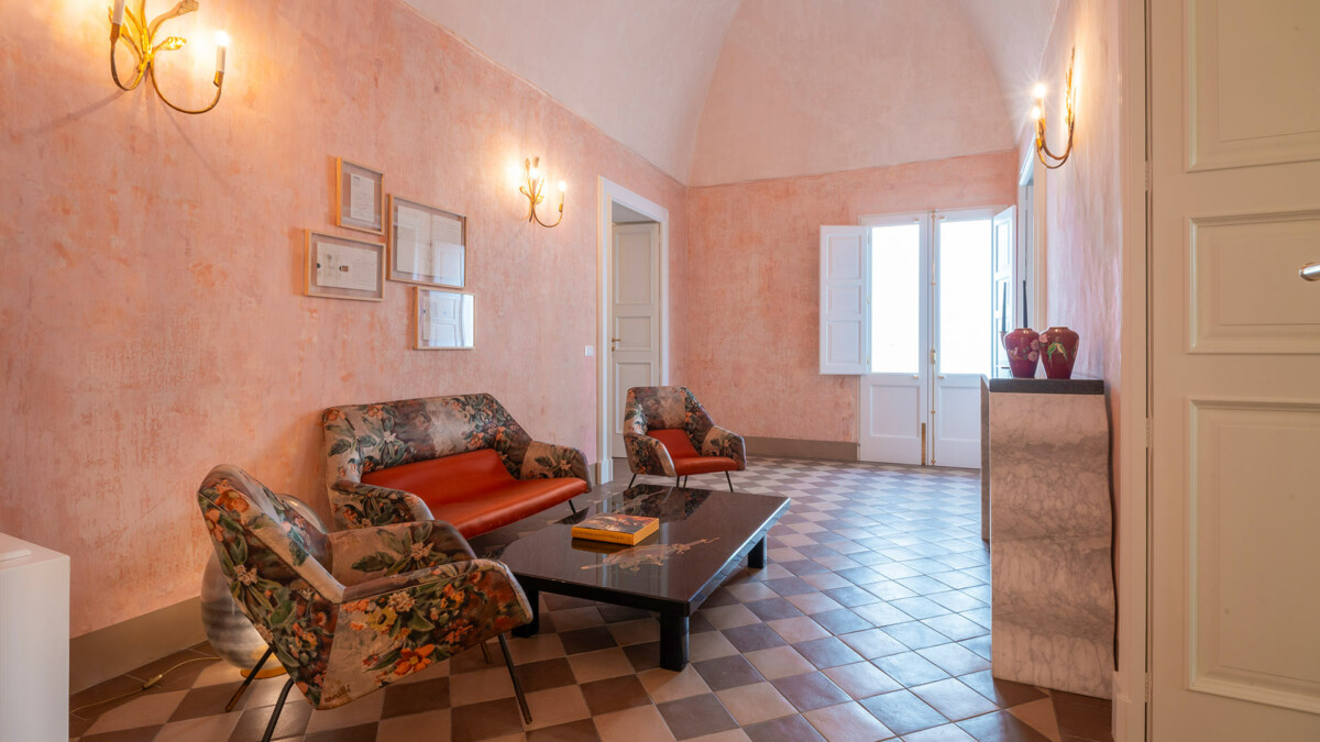 Chaque pièce est une véritable scène où plusieurs œuvres d’art sont mises en valeur. Des photographies originales vintage de Giacomelli, Ghirri et Pietzsch côtoient des signatures telles que Verlaine, Cocteau et Picasso. Les grands peintres du XVIIe siècle sont également présents, avec des tableaux de Francesco Albani, Giacomo del Po et Anthonius van Dyck. Le mobilier de renommée mondiale, signé Alvar Alto, Le Corbusier, Ponti, Ico Parisi, Jan Bocan et Paolo Buffa, se marie harmonieusement avec les tissus d’origine Marelli et Maison Jansen Caccia Dominioni. Les miroirs, appliques et lampes des années 1970 créent une ambiance élégante et sophistiquée. Chaque espace est une véritable œuvre d’art, où l’histoire, l’art et la mythologie se rejoignent