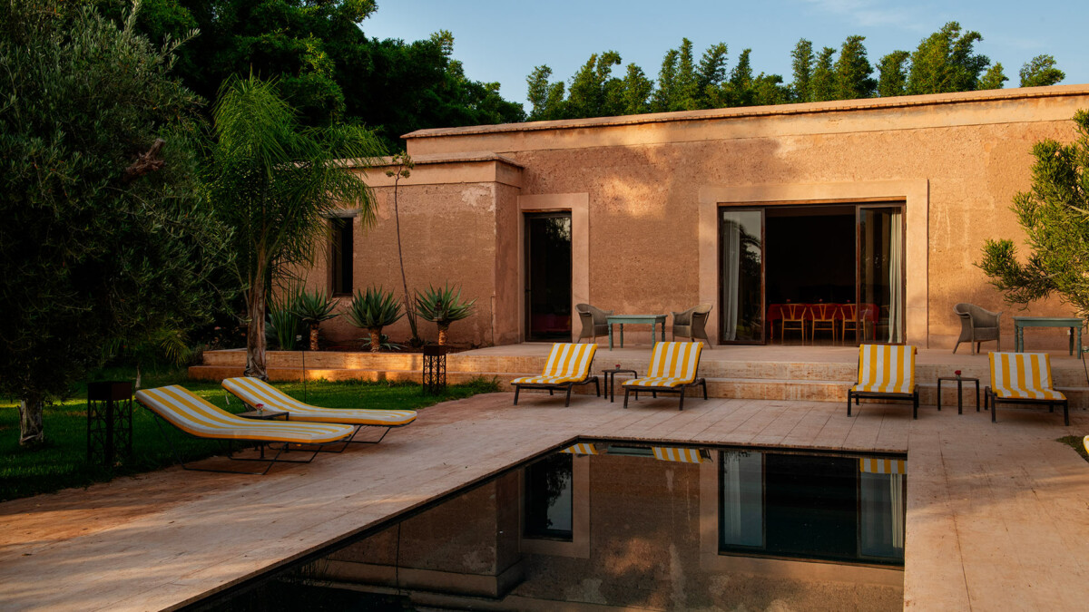 Pavillon Terra est située à Marrakech à moins de 10 minutes de la médina. La villa dispose de 2 grandes chambres avec salle de bain privative, un grand jardin, une piscine superbe de 30 mètres (non chauffée).