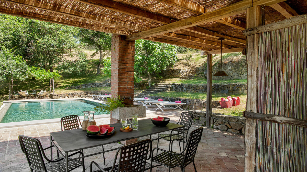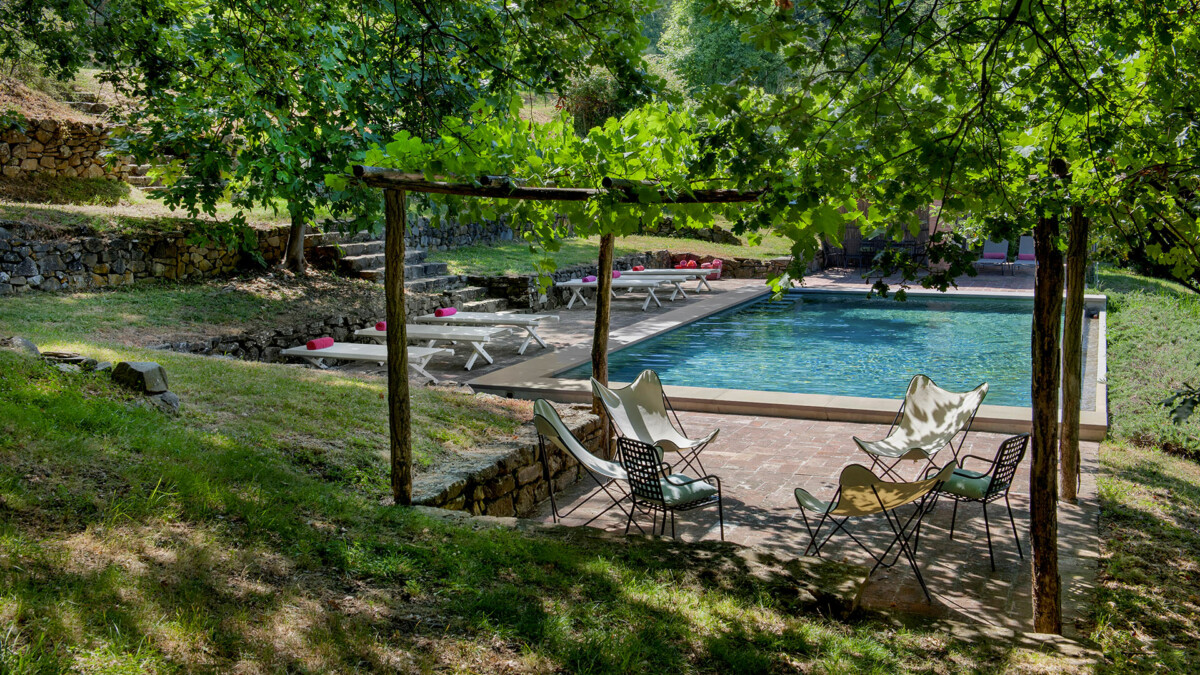 Piscine chauffée avec chaudière (12×6 mètres) avec cabane à paille et aire de pique-nique couverte (avec petit frigo, pergola et dallage en cotta). Pour la saison 2018, la piscine a été convertie en système d’eau salée.