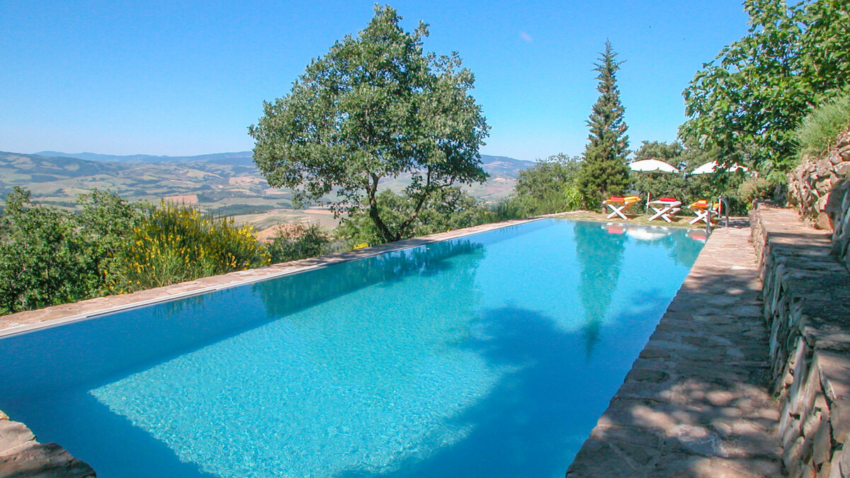 Piscine solaire (13 x 4 mètres) avec jet stream, spécialement conçue pour profiter du paysage. Chauffage de la piscine par panneaux solaires pour la chauffer naturellement à 28/30 ° C (82/86 ° F) en été et 24-26 ° C (75/79 ° F) en moyenne saison, selon la météo. Une chaudière dédiée peut augmenter davantage la température, si nécessaire.