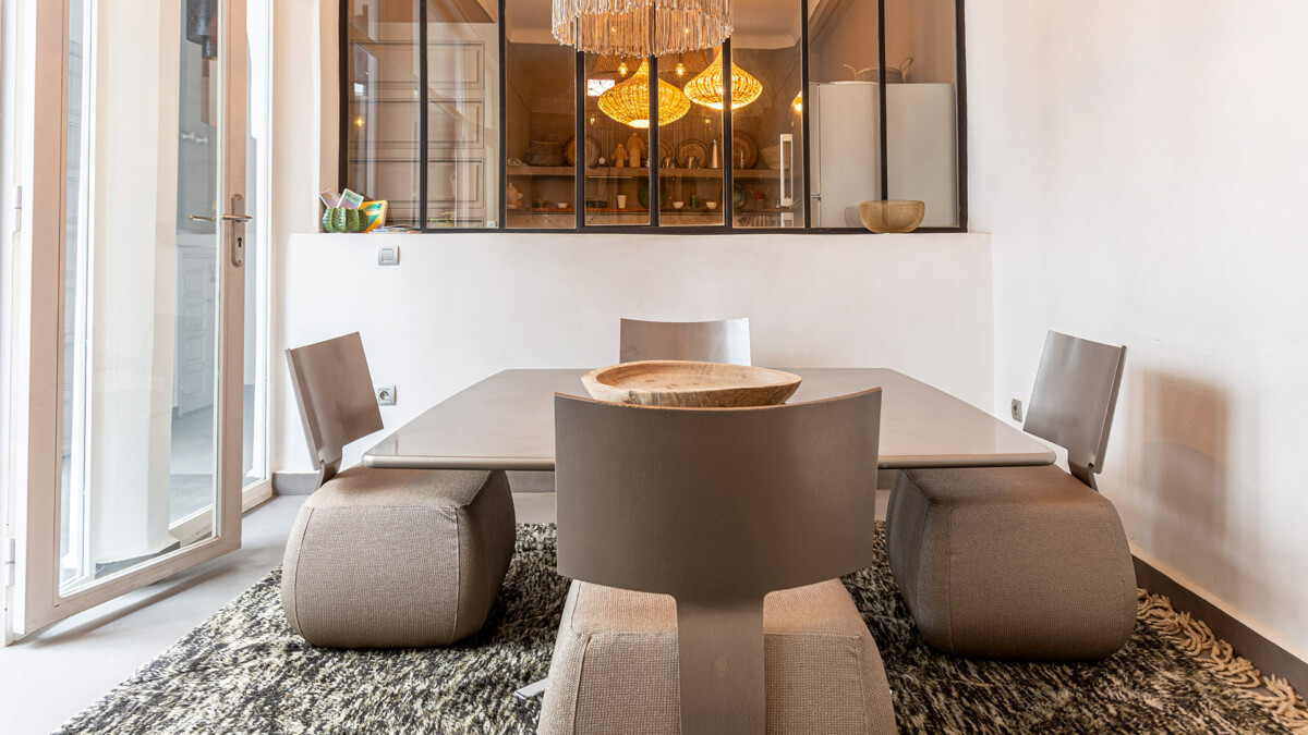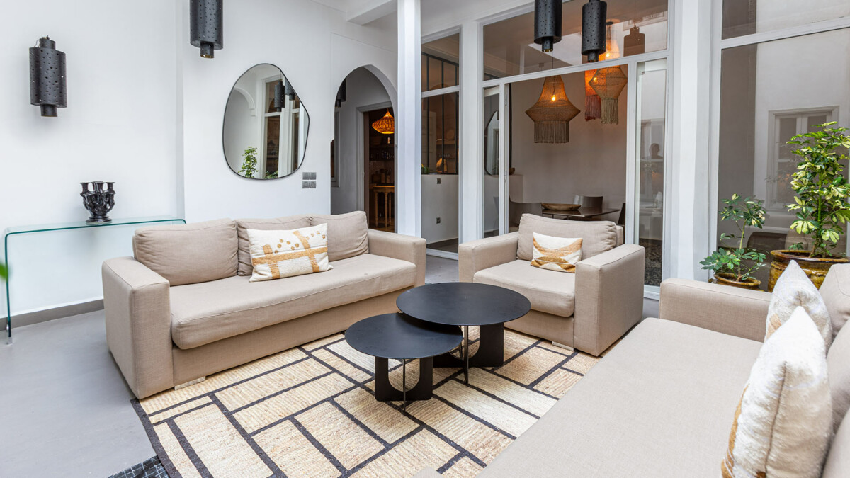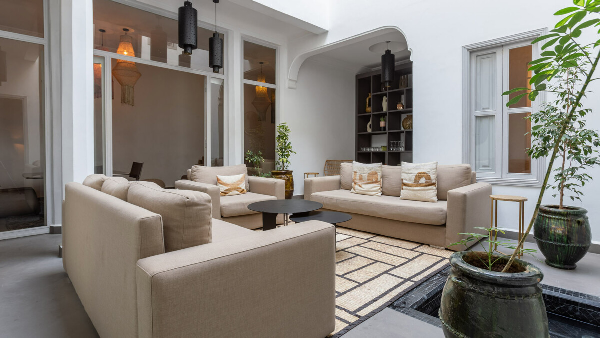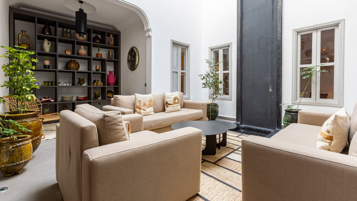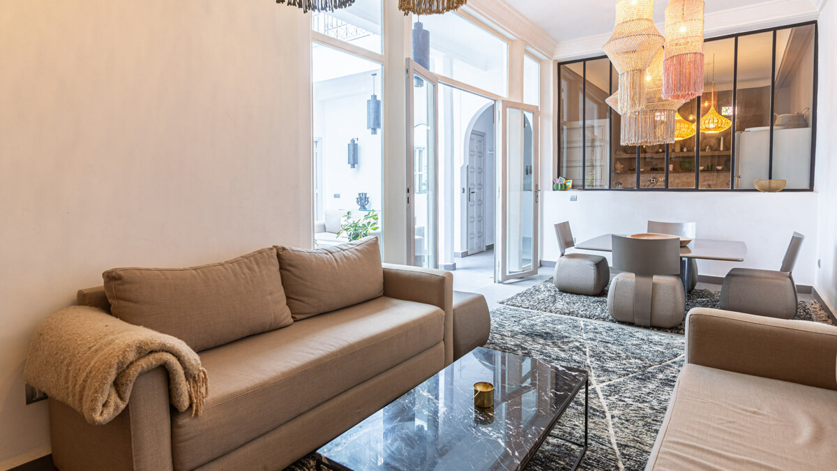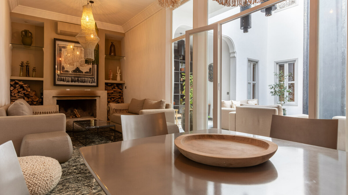 Alliant modernité et tradition, le riad vous accueille dans un espace chaleureux et accueillant. Le patio central, véritable cœur de la maison, abrite un salon confortable parfait pour vous détendre. Le salon avec cheminée vous invite à des soirées de détente, tandis que la salle à manger et la cuisine contemporaine, entièrement équipée, raviront les amateurs de cuisine.