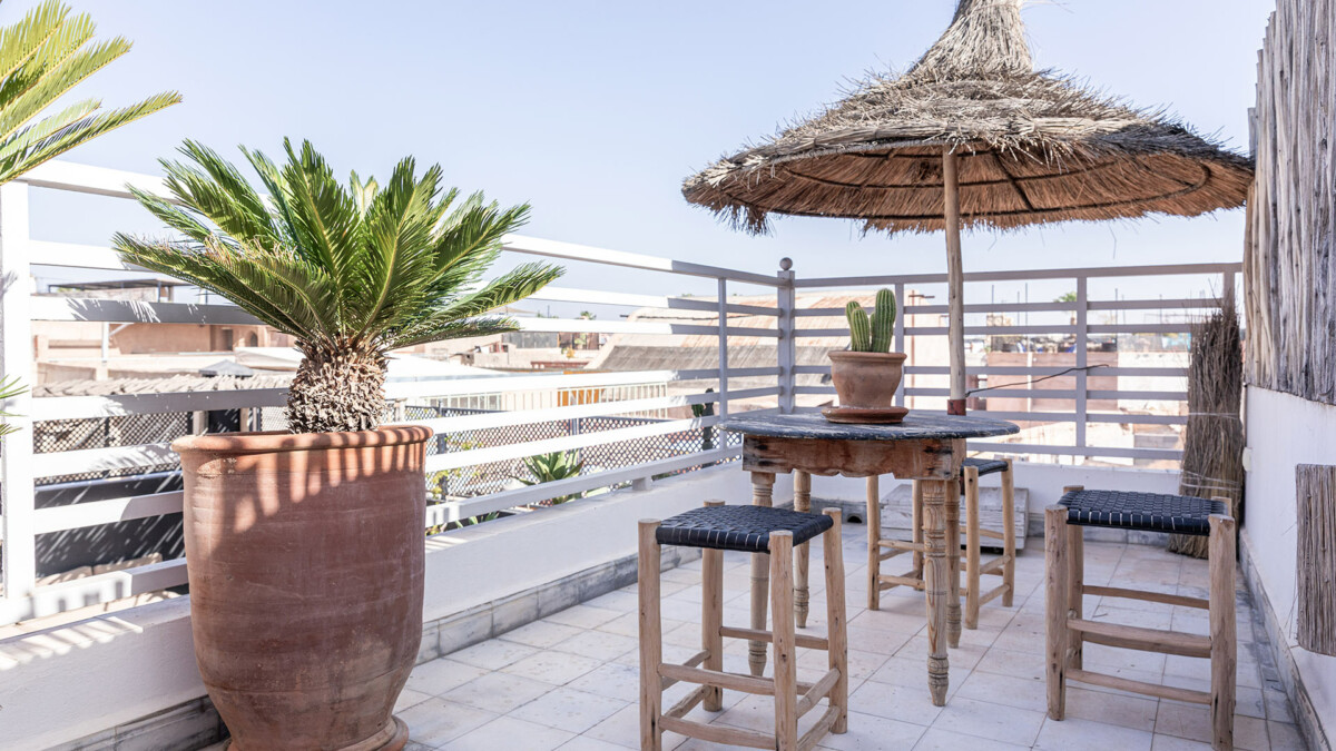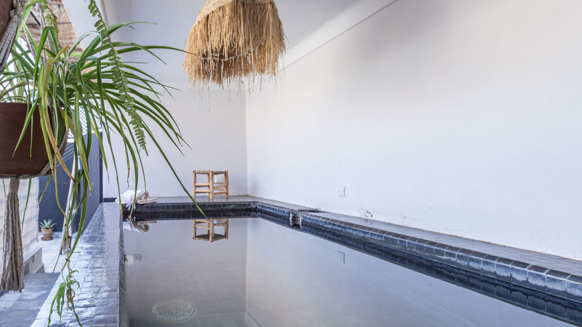 La terrasse sur le toit est l’une des principales attractions du riad. Elle offre un espace parfait pour vous détendre sous le soleil marocain ou à l’ombre pendant les journées chaudes. Le bassin d’eau (3,5 x 2m, Profondeur minimum : 0,7m et maximum : 0,9m) est une véritable oasis rafraîchissante. Équipée de sièges confortables, la terrasse est un lieu idéal pour que vous puissiez prendre votre petit déjeuner ou savourer votre dîner dans une ambiance intime et charmante.