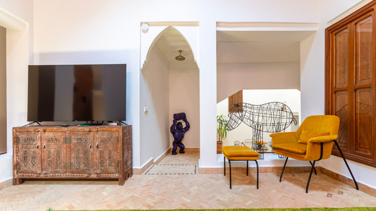 D’autre part, les voyageurs pourront facilement partir à la découverte de Marrakech : place des Epices à 5min, place Jemaa El Fna et tous les souks et incontournables de la médina à 8min.