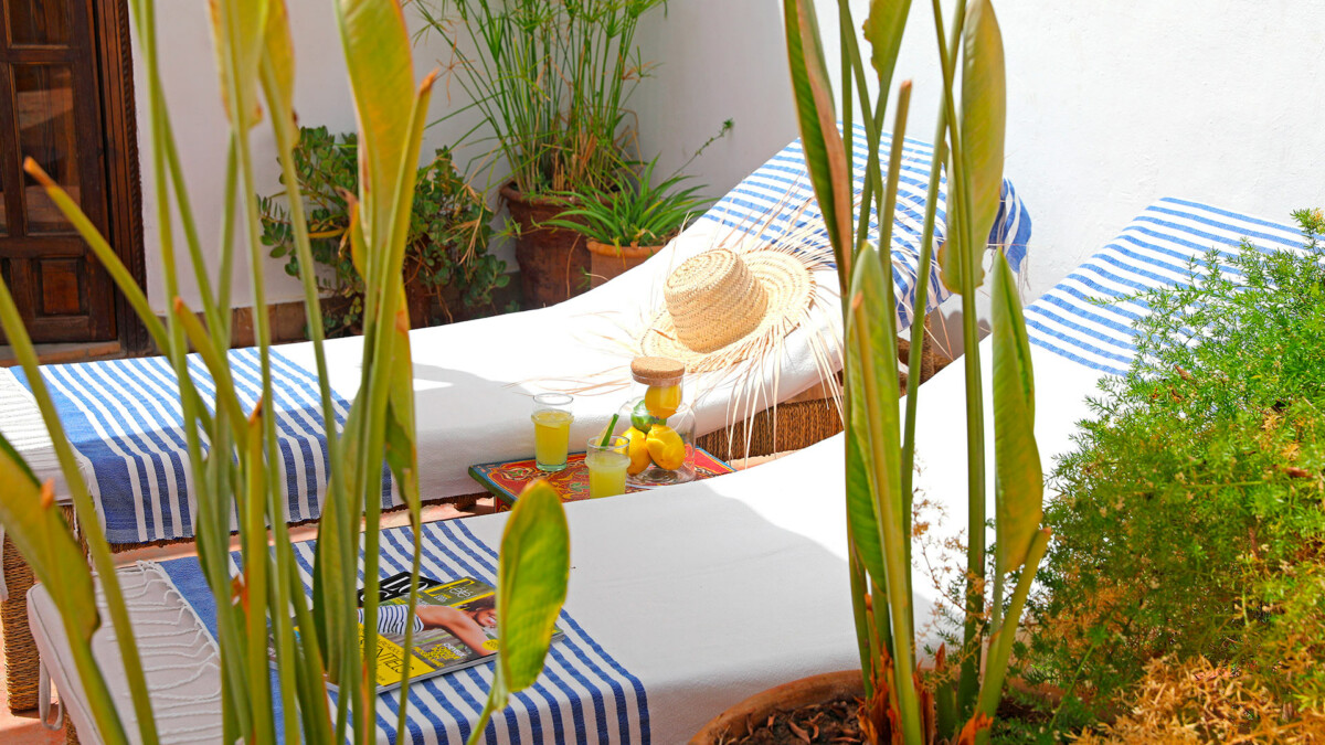Le patio dessert 2 des chambres, la salle à manger et un petit salon.