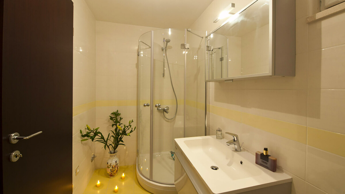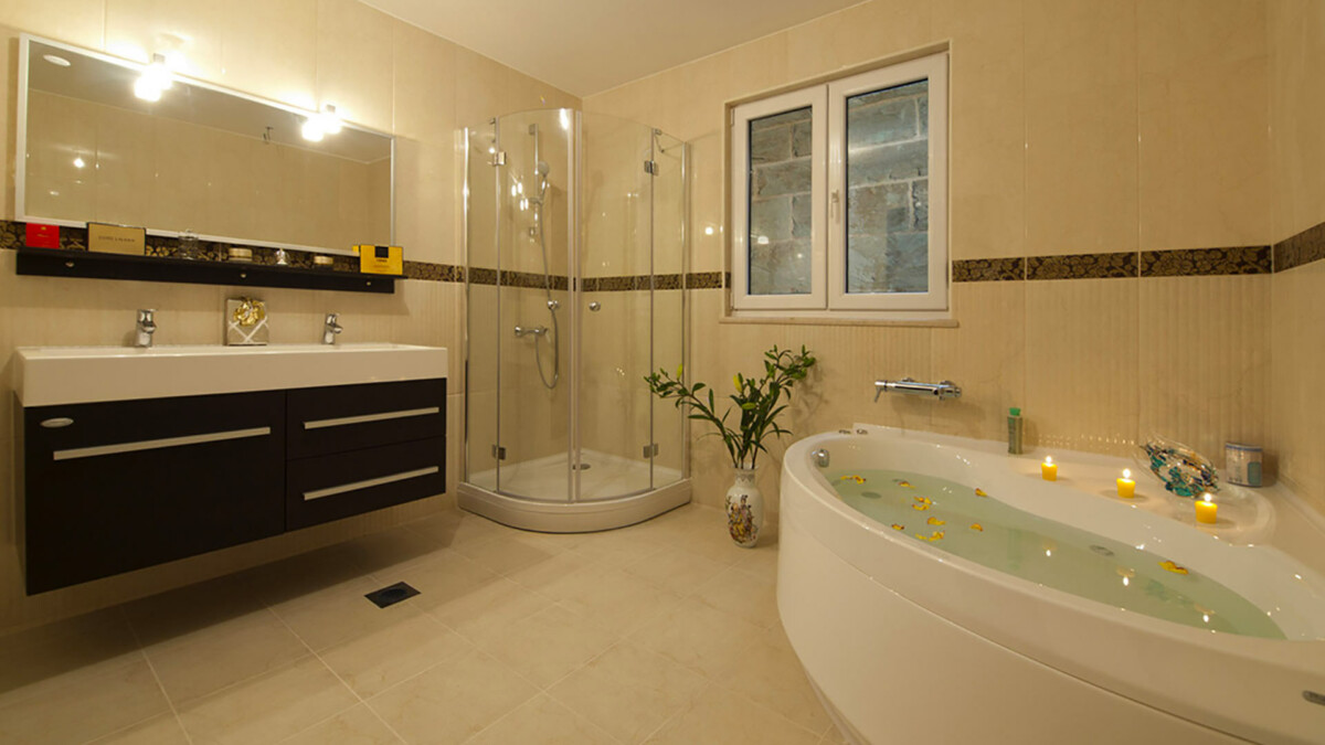 -3 salles de bain (1 pour chaque chambre double, chacune avec douche et bidet, la salle de bain maîtresse ayant un jacuzzi supplémentaire, et 1 salle de bain pour les 2 chambres simples)