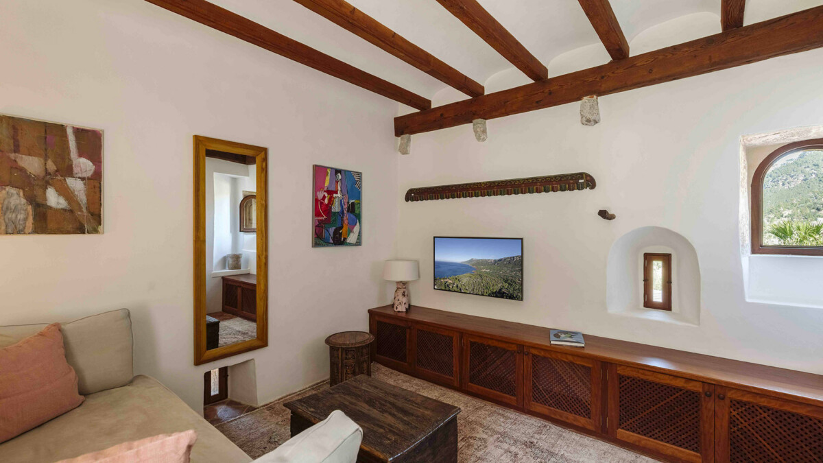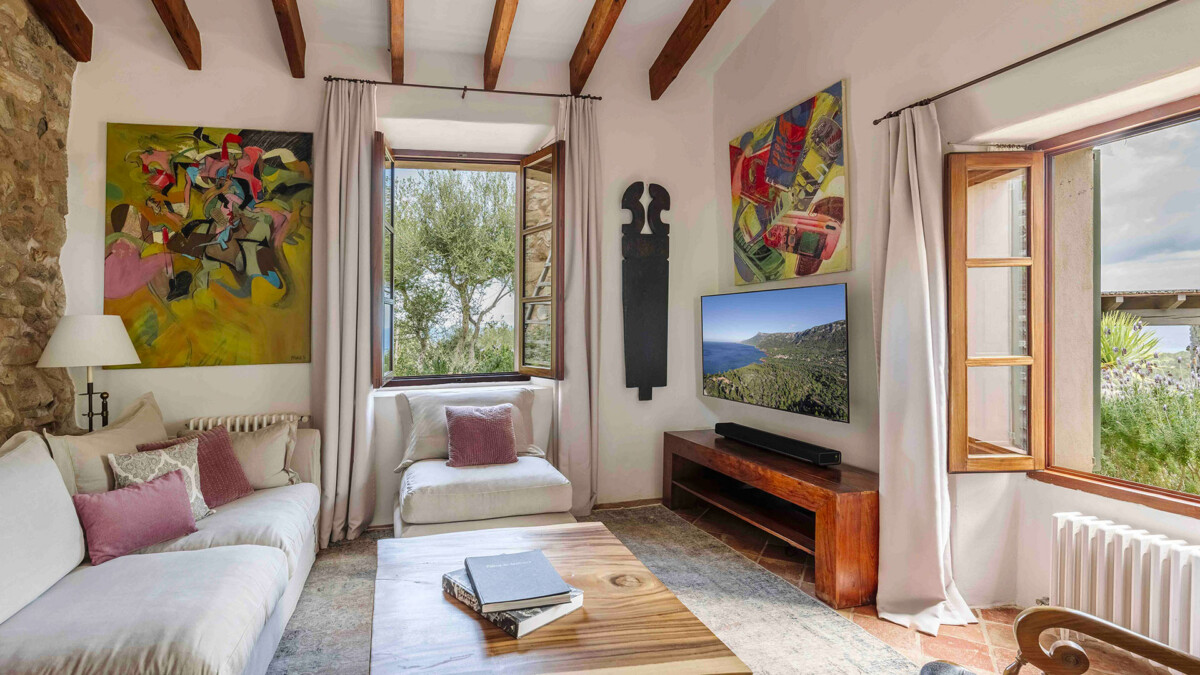 Son Balagua est une villa majorquine traditionnelle nichée sur la côte ouest de Majorque. Elle propose quatre chambres et beaucoup d’espace pour se détendre et profiter de la vue magnifique sur la mer Méditerranée. La villa peut accueillir 8 adultes dans 4 chambres. Une chambre est située dans la tourelle caractéristique de la villa, avec une cage d’escalier incurvée menant au salon du premier étage et finalement à la chambre à l’étage supérieur.