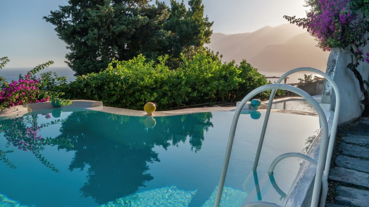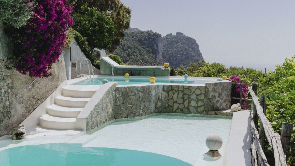 Les nombreuses terrasses offrent un cadre parfait pour se détendre et manger à l’extérieur. La propriété dispose également d’une piscine privée à double niveaux, ingénieusement reliés par des marches communicantes.