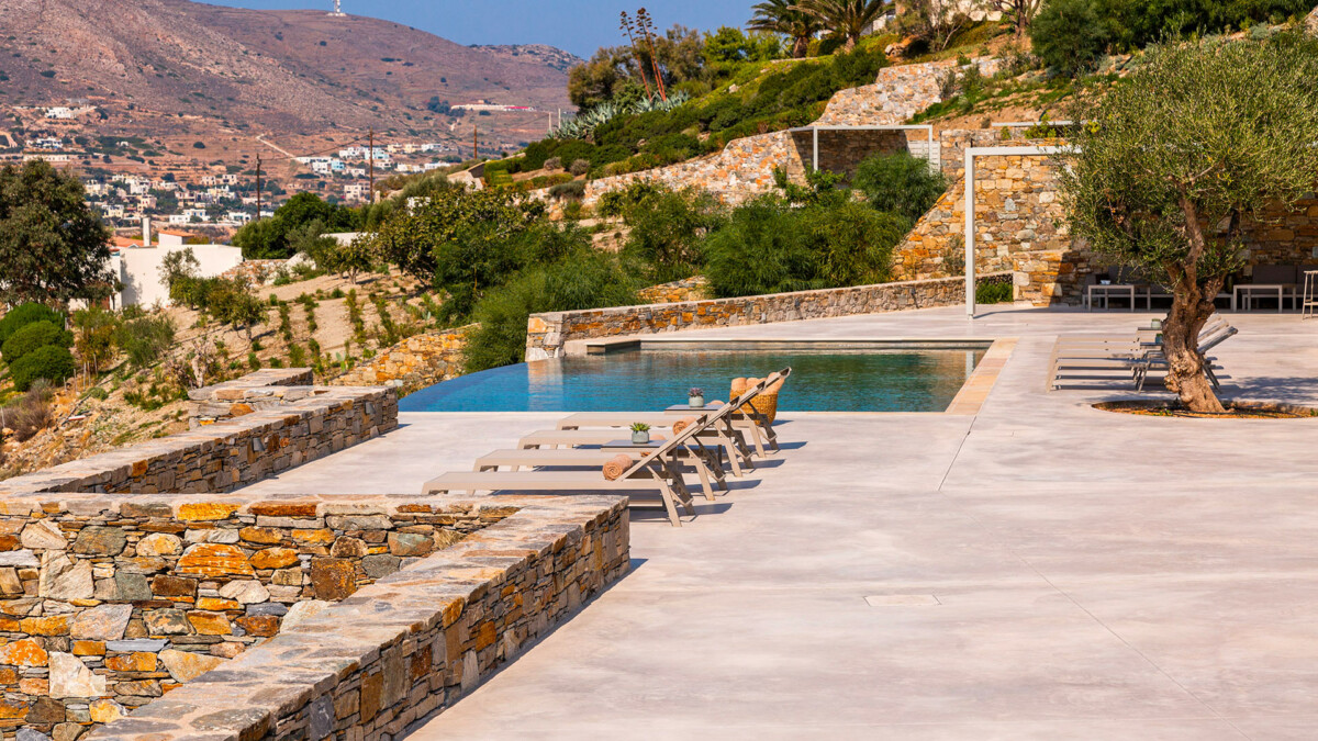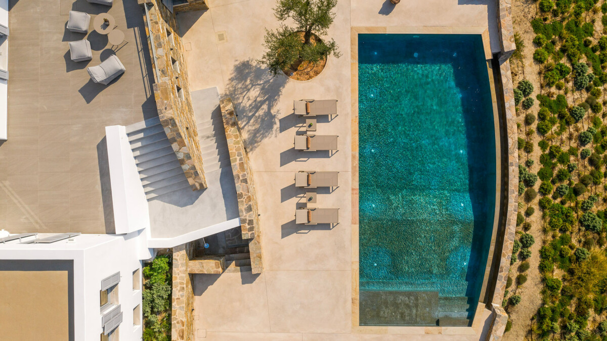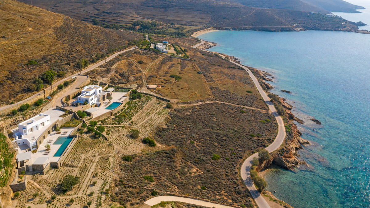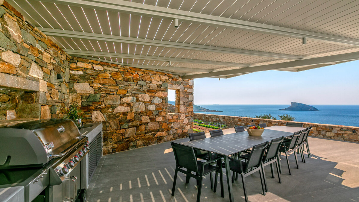 Le terrain de 2,5 hectares de la Villa Actea a été conçu par l’architecte paysagiste Helli Pangalou. Les extérieurs offrent un total de 630 m² d’espace avec des plantes telles que la lavande, le romarin et le thym, ainsi que des oliviers, des grenadiers et des acacias. Les installations extérieures incluent une belle piscine, un bar, un espace salon, des pergolas et plusieurs terrasses permettant d’admirer les couchers de soleil.