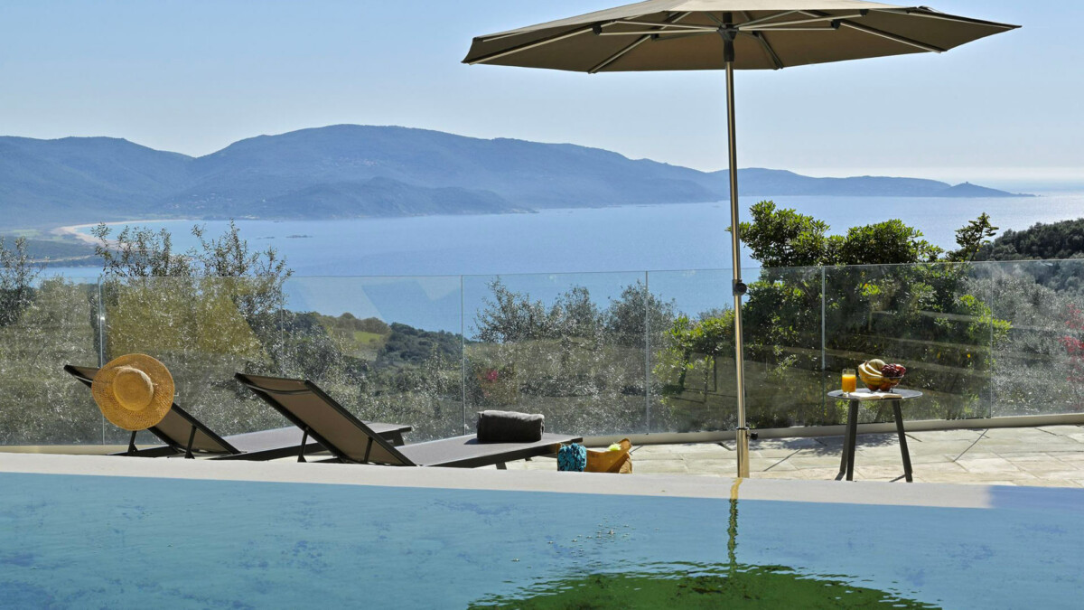 Les hôtes pourront aussi profiter de la belle piscine privée chauffée et à l’eau salée (4m x 5,5m – profondeur de 0,2 à 1,7m), depuis laquelle il est possible d’admirer une vue magnifique. Cette dernière est accessible par des marches.
