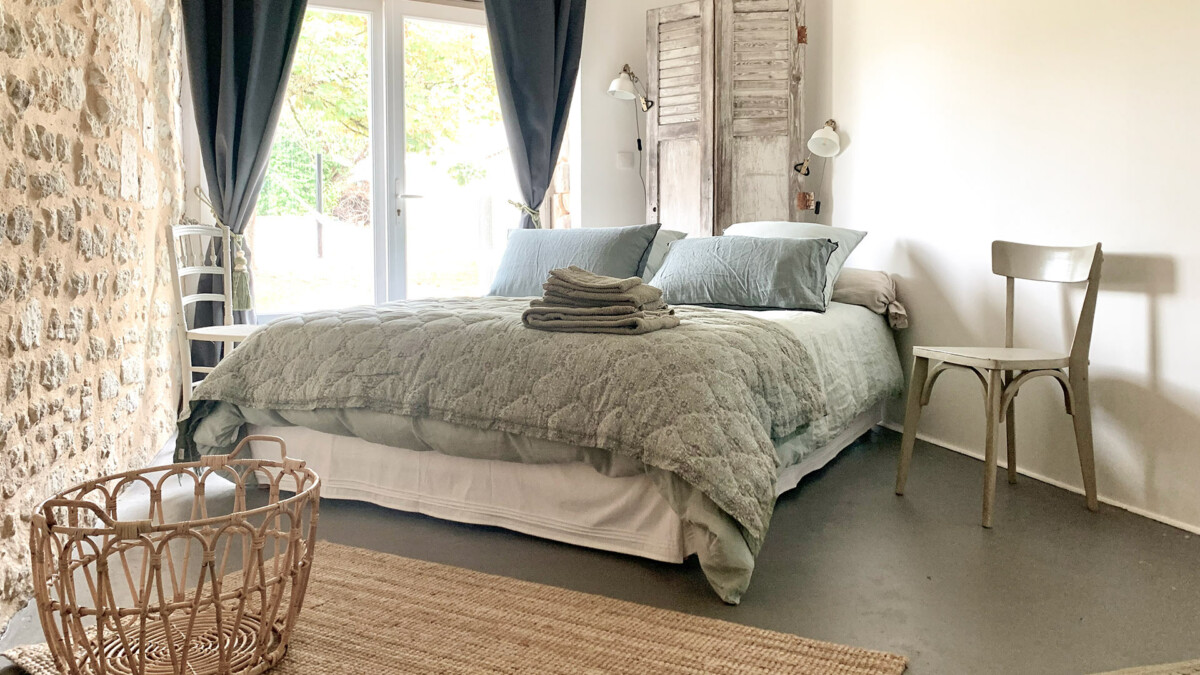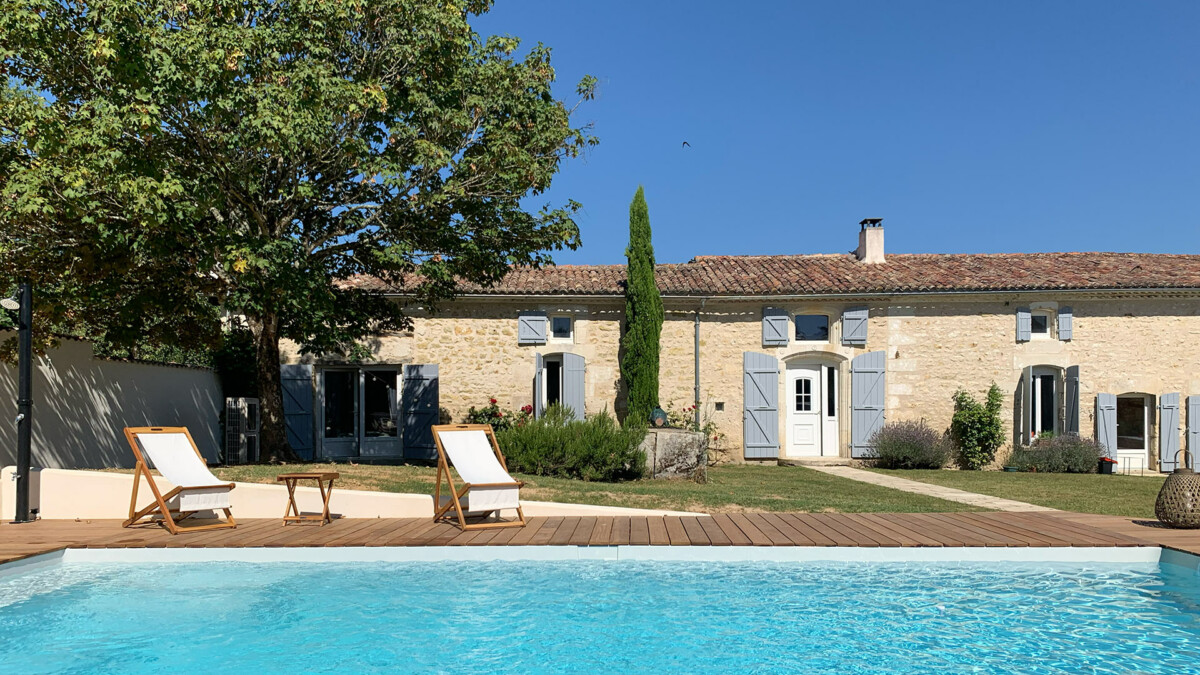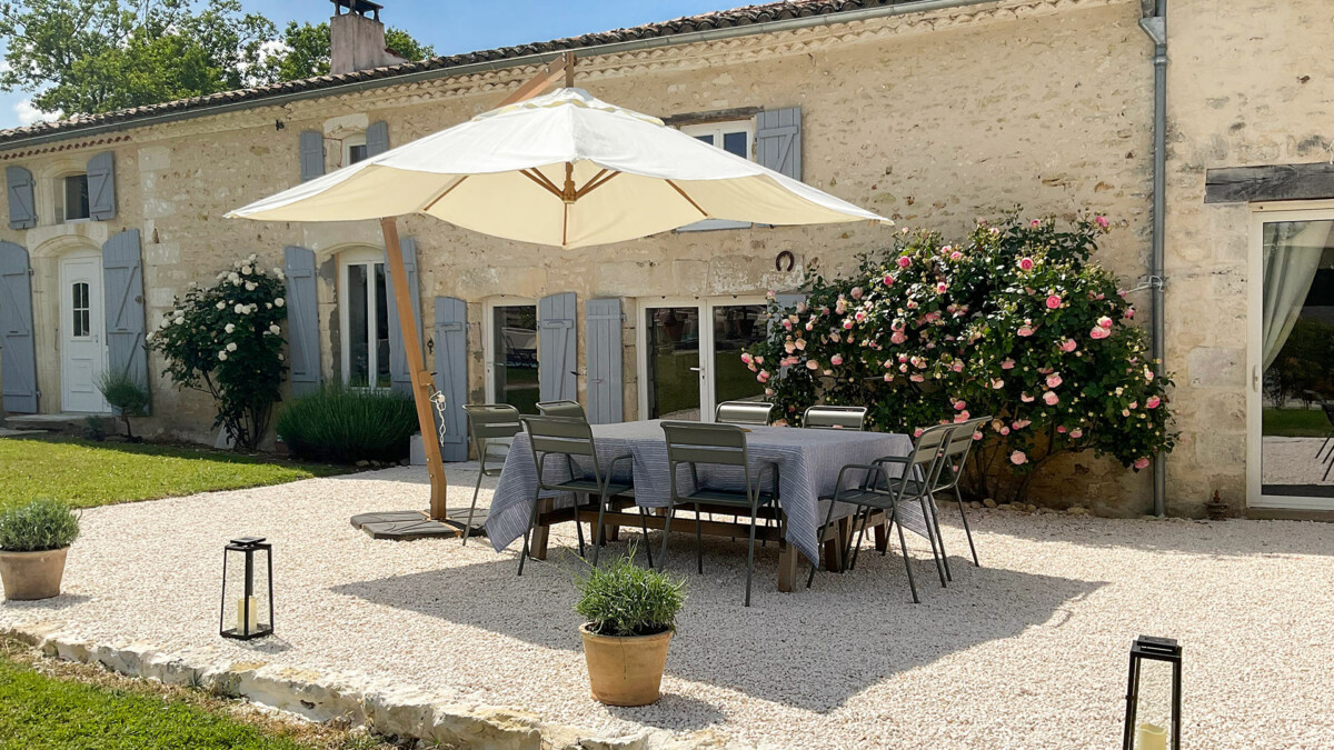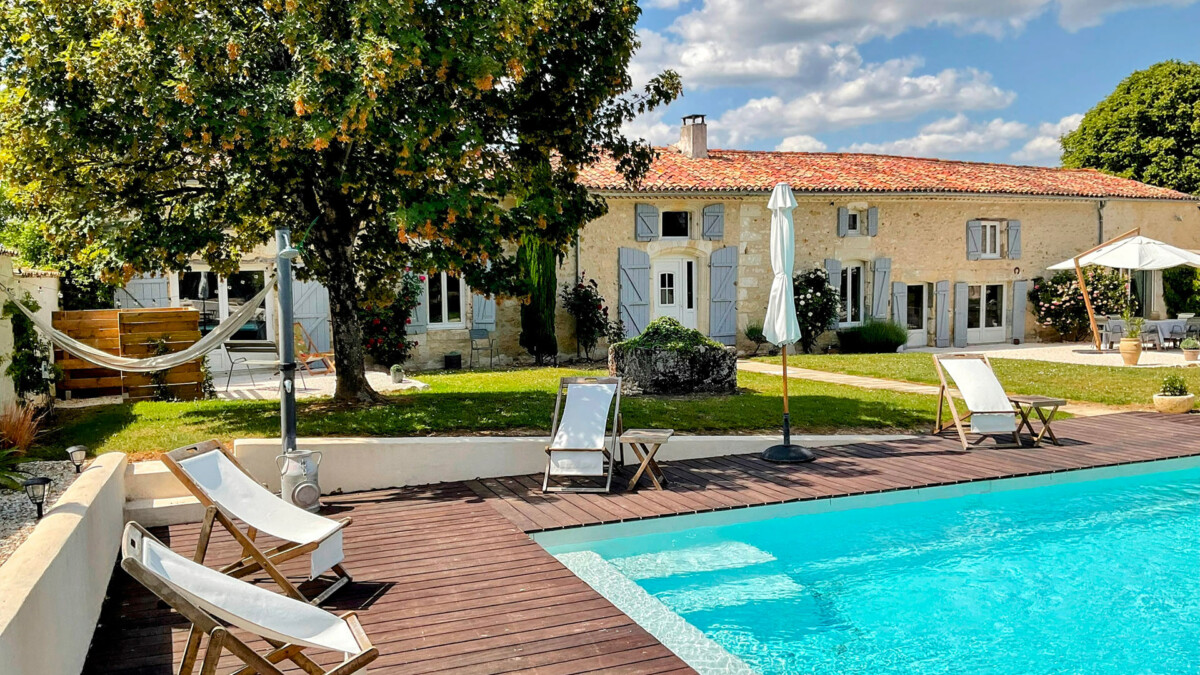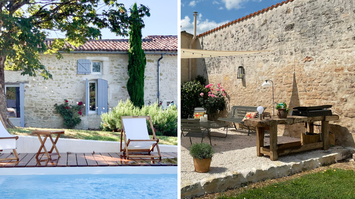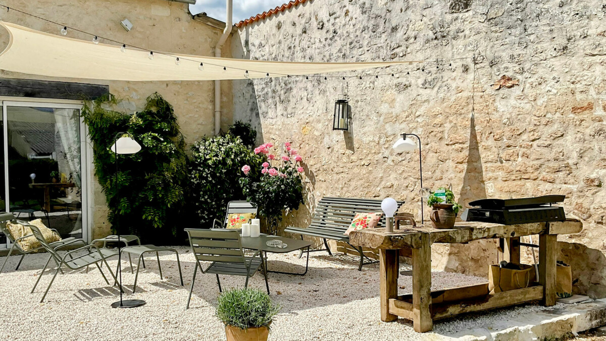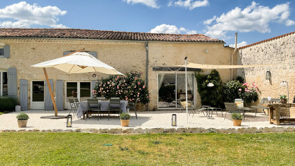 Avec ses volets bleus et sa façade de pierres de Crazannes, la villa Alcéa témoigne de l’authenticité et de la douceur de vivre de la région quelque soient la saison. Il s’agit d’une charmante longère avec piscine chauffée, située à Virollet, en Charente Maritime. Nichée au bout de l’impasse de son petit hameau entouré de vignobles, la propriété bénéficie d’un environnement calme et serein, tout en étant à quelques kilomètres de l’océan et de l’effervescence touristique de la côte Atlantique. Véritable parenthèse bucolique, cette demeure est parfaite pour se ressourcer en amoureux, en famille ou entre amis.