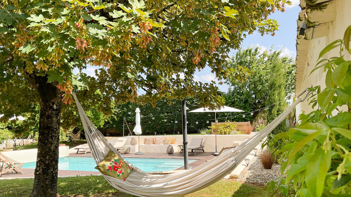 L’espace sieste : à l’ombre de l’érable, venez vous reposer dans le hamac offrant de belles siestes réparatrices embaumées de la fragrance subtile du jasmin et de la lavande.