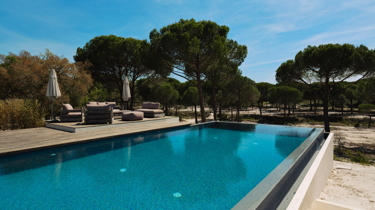Située à Muda-Comporta et à 5-10 minutes des plages de Carvalhal et Pego, cette villa moderne nouvellement construite avec piscine privée dispose de 5 chambres avec salle de bain, ainsi qu’un appartement autonome. Ses intérieurs très spacieux et design se marient magnifiquement avec les 12 hectares de forêt de pins qui l’entoure. Les différentes terrasses en bois sont encadrées par des oliviers, des arbustes méditerranéens et les herbes aromatiques, dégageant des arômes merveilleux jour et nuit. Être orienté plein sud fait profiter la villa d’une lumière et d’un coucher du soleil magnifique sur les jardins. Les différentes terrasses offrent des espaces magiques pour se détendre à différents moments de la journée. La maison est conçue pour accueillir 10 personnes (+ 2 supplémentaire sur demande). En dehors de la haute saison, il est possible de louer la villa pour 6 personnes (l’étage supérieur sera fermé).