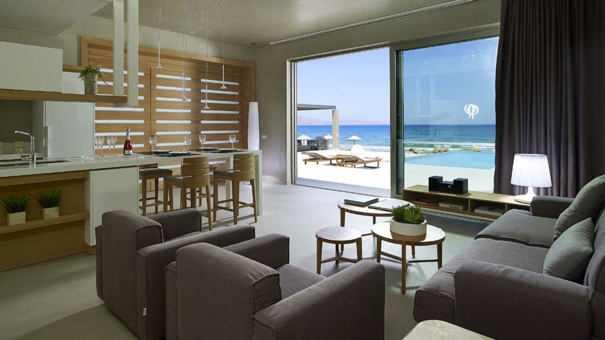 Située sur la baie de Kissamos, la propriété contemporaine, propose des lignes épurées et utilise des couleurs et des matériaux naturels, car elle profite de la lumière naturelle. Les grandes fenêtres de la cuisine/ salle de petit-déjeuner lient parfaitement l’intérieur à l’extérieur offrant un magnifique panorama en bord de mer.