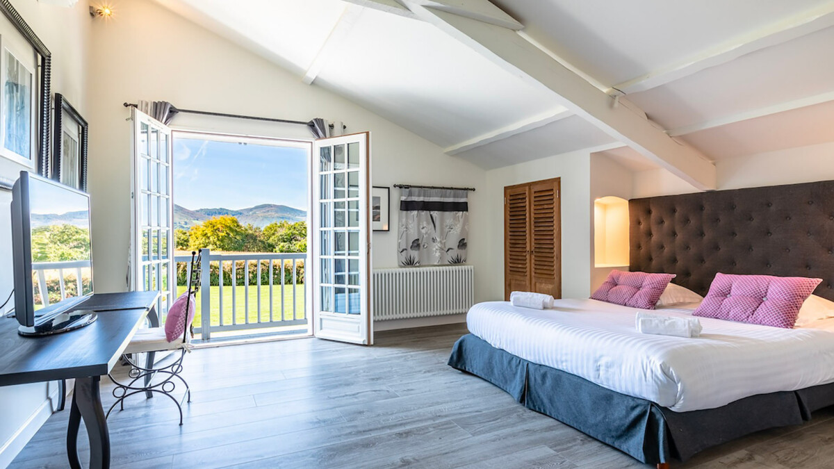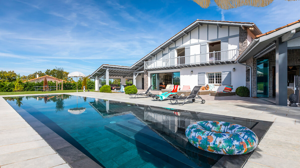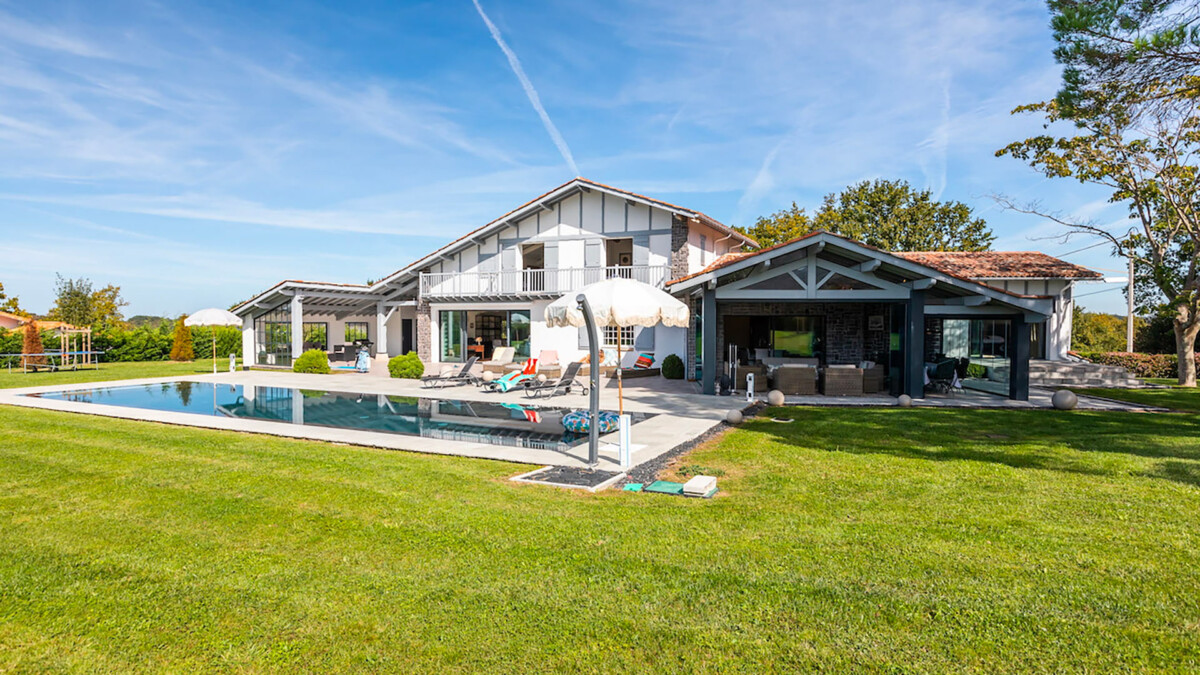 Située dans un écrin de verdure, la villa Anakin conjugue style vintage, luminosité généreuse et commodités modernes. Vous pourrez profiter de ses espaces de vie ouverts, de sa vue imprenable sur la Rhune, de sa piscine chauffée et de son vaste jardin.