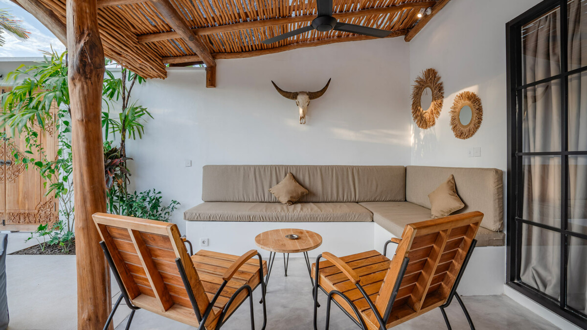La Villa Anoyan est composée de deux belles maisons qui communiquent à l’aide d’une large porte balinaise en bois, la Villa Wayan et la Villa Anom, climatisées comprenant chacune 2 chambres et 2 salles de bain. Les espaces salon, salle à manger et cuisine sont ouverts sur l’extérieur et offre une belle expérience de vie balinaise.