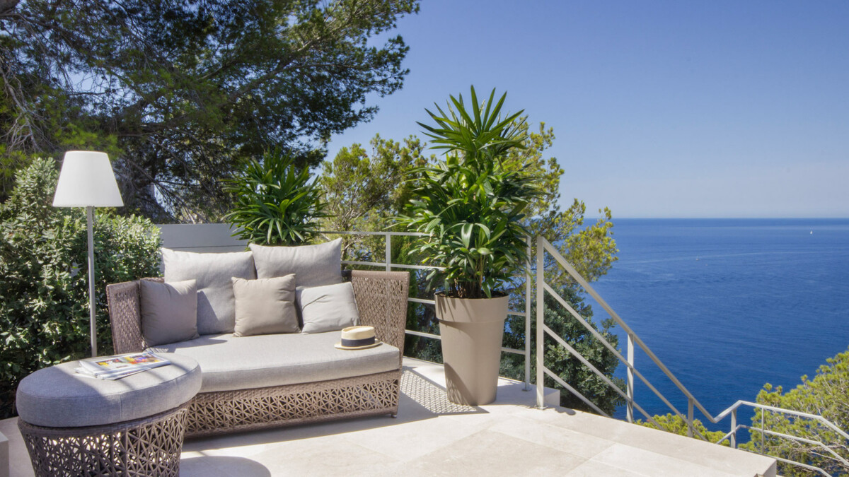 L’emplacement de la Villa Astor est unique et pratiquement insurpassable sur l’île de Majorque. Le terrain à flanc de colline orienté sud-ouest surplombe un panorama à couper le souffle sur la mer – et dans de bonnes conditions, vous pouvez même regarder jusqu’à Ibiza. En pleine nature et situé au bout d’un cul-de-sac, vous pourrez profiter de cette vue en toute tranquillité et intimité. Cependant, la plage ou le centre de Port d’Andratx ne sont qu’à quelques minutes.