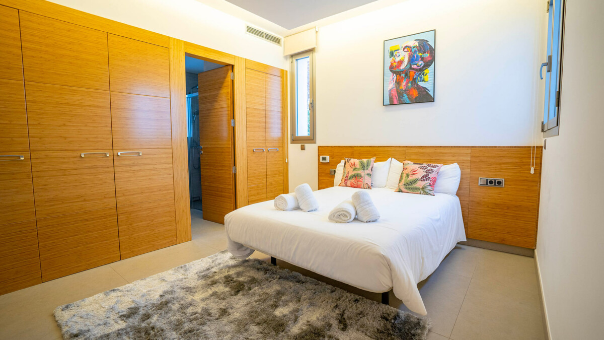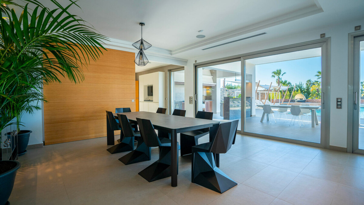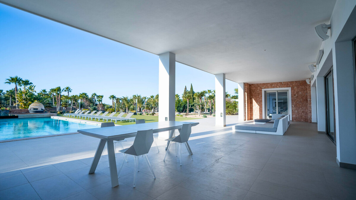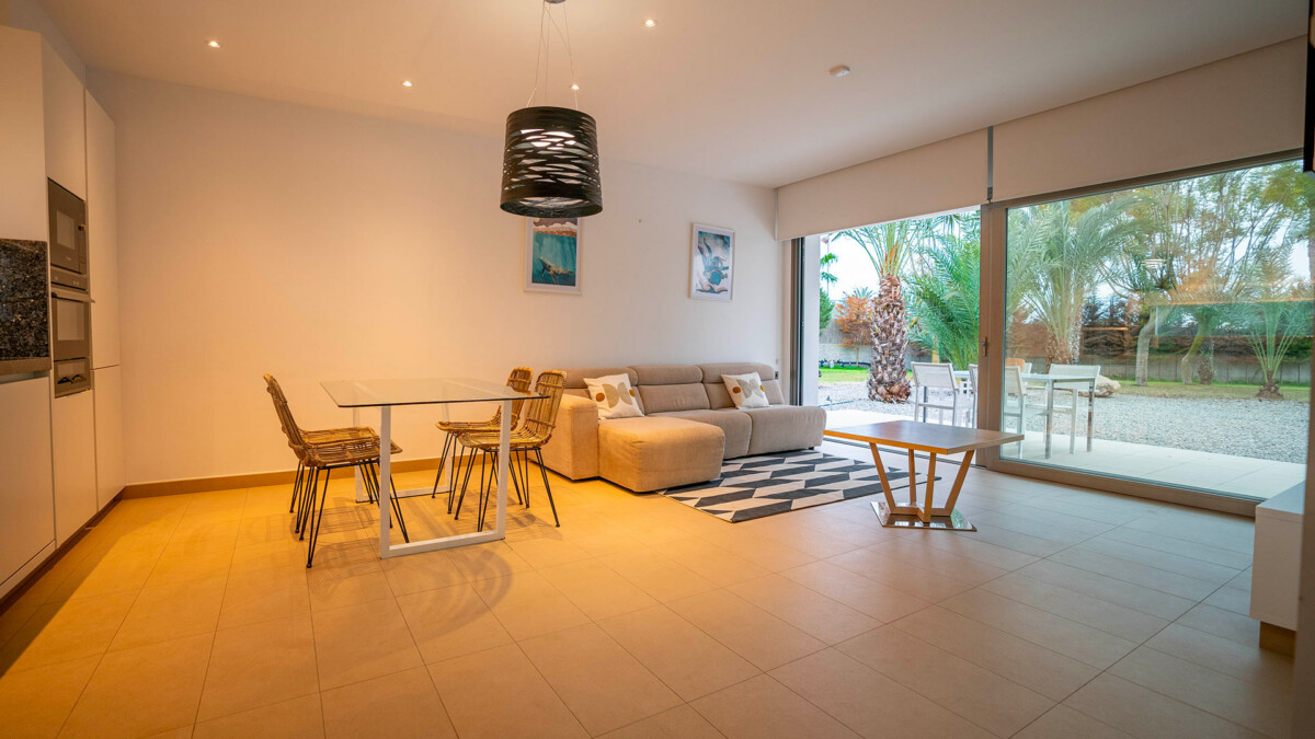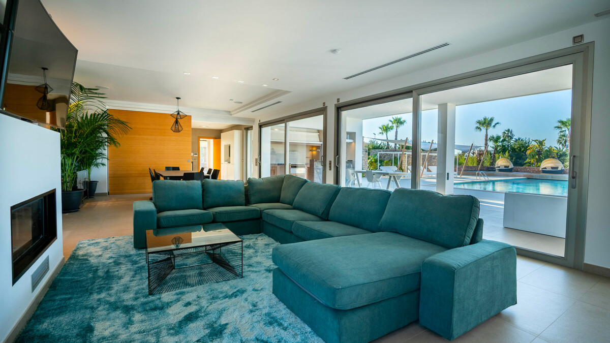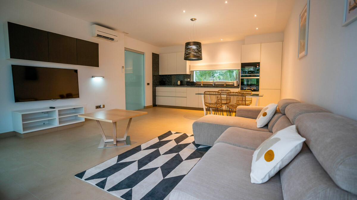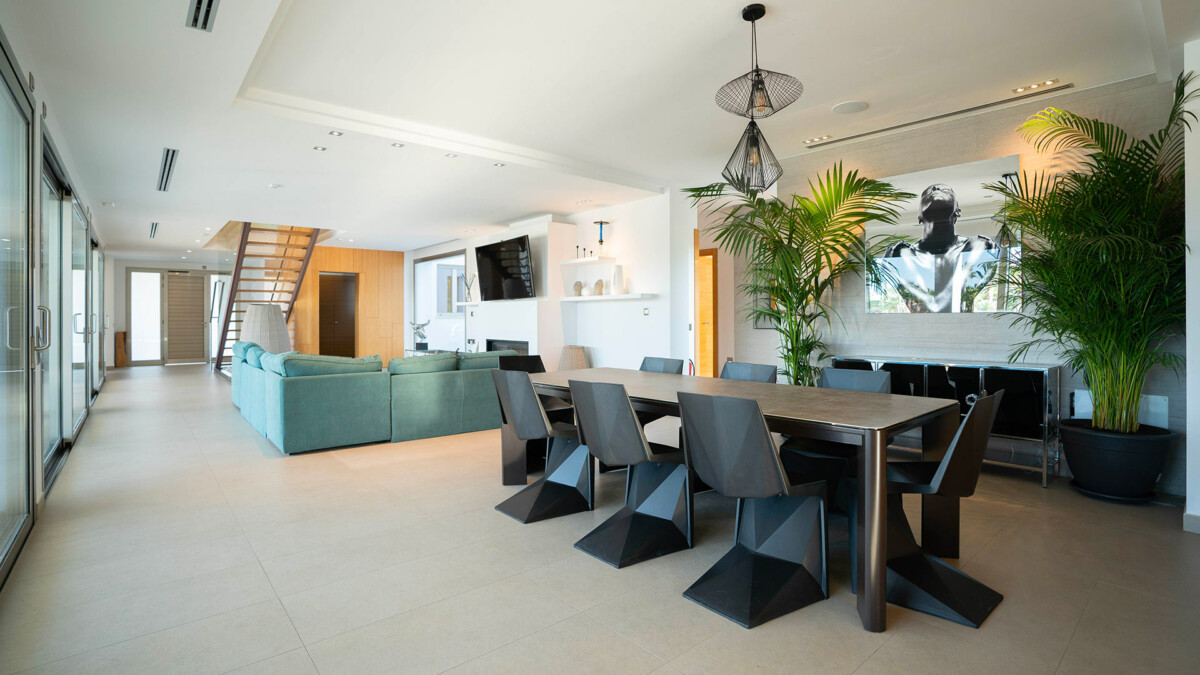 Vous apprécierez également le séjour, qui offre des vues spectaculaires sur la piscine, le jardin et Dalt Vila grâce à ses grandes ouvertures. C’est l’endroit idéal pour se détendre !
