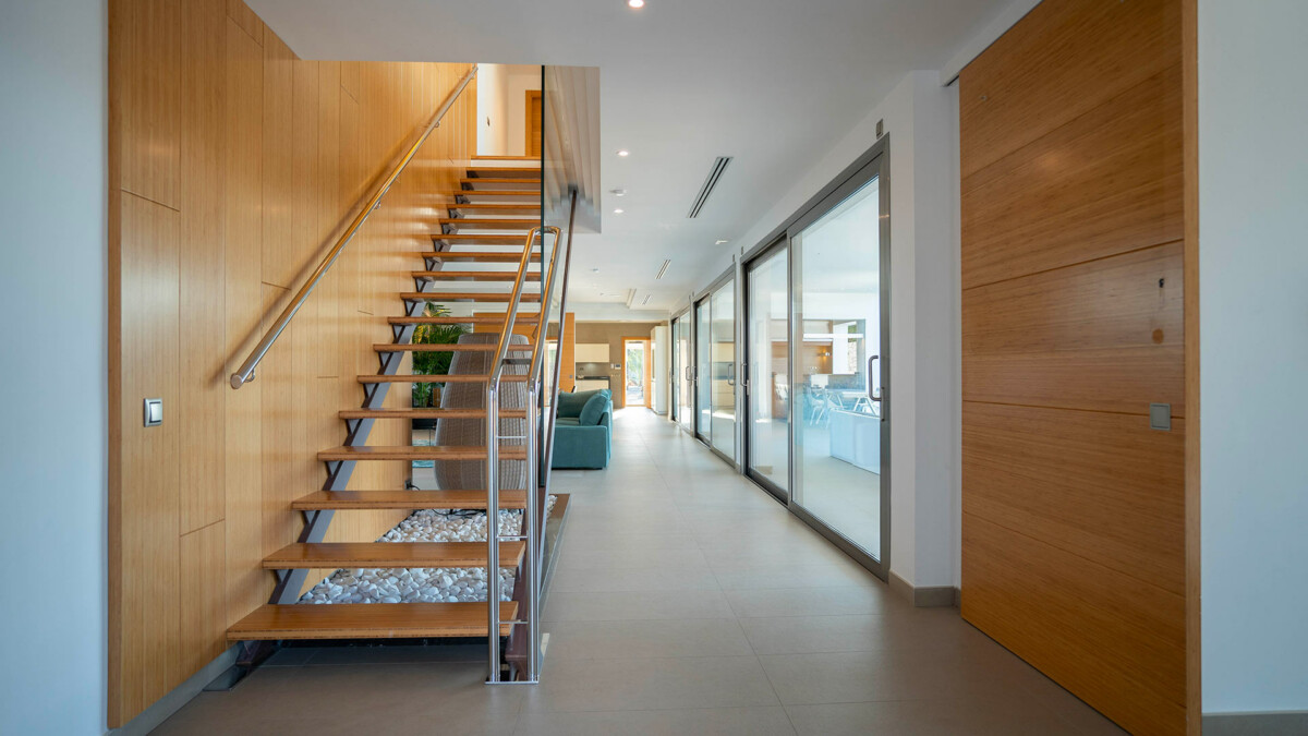 Cette maison est accessible par l’entrée nord et bénéficie d’une incroyable lumière naturelle dans son hall d’entrée grâce à la grande fenêtre située devant.