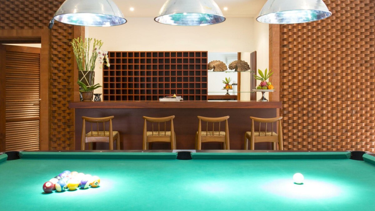 La salle de jeux est équipée d’un billard, de fléchettes et d’un bar. La salle de sport est équipée de machines, de poids et d’une douche et d’une salle de bains attenantes.