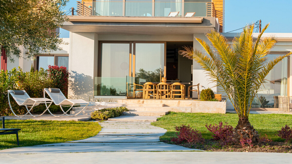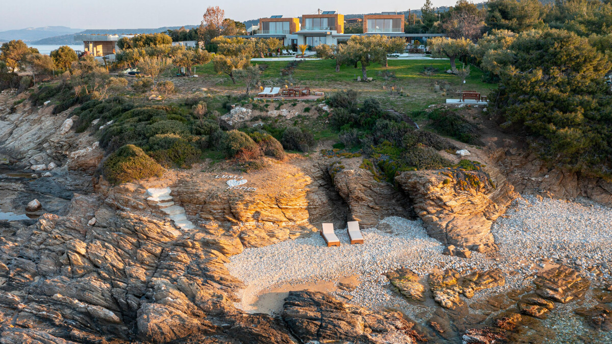 D’un côté, la vue imprenable sur le luxuriant et dense mont Athos de Sithonia avec ses pins et ses oliviers vous impressionnera. De l’autre côté, la vue sur les eaux turquoises de la mer Egée et leur plage privée laisseront vos yeux se reposer. Cette combinaison crée une expérience unique et l’environnement idéal pour de véritables loisirs, détente et tranquillité.