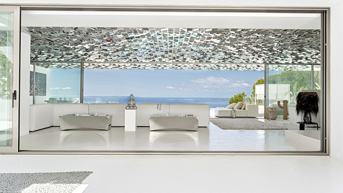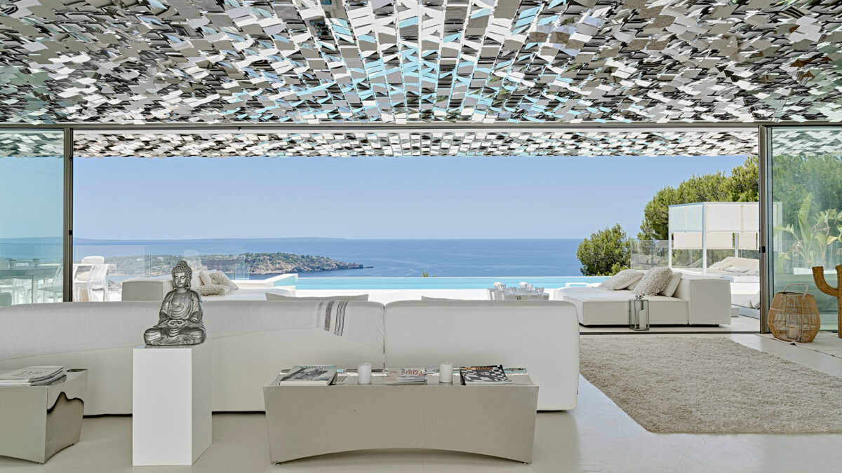 Les espaces communs offrent une vue imprenable sur la mer, et le design de la villa crée une atmosphère magique tant de jour que de nuit.
