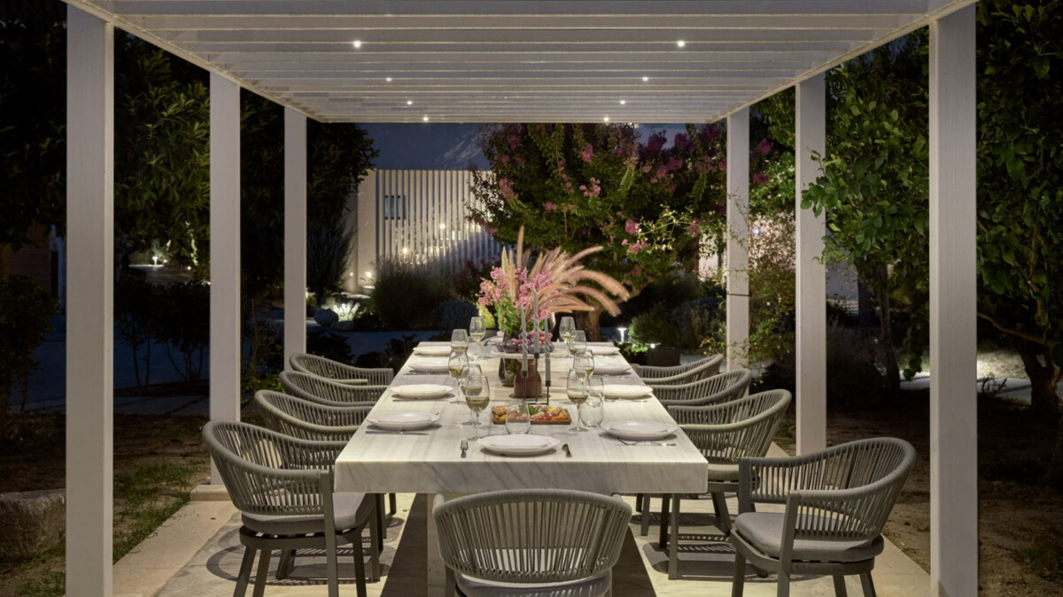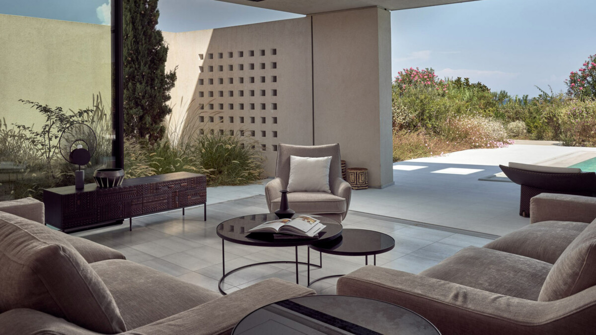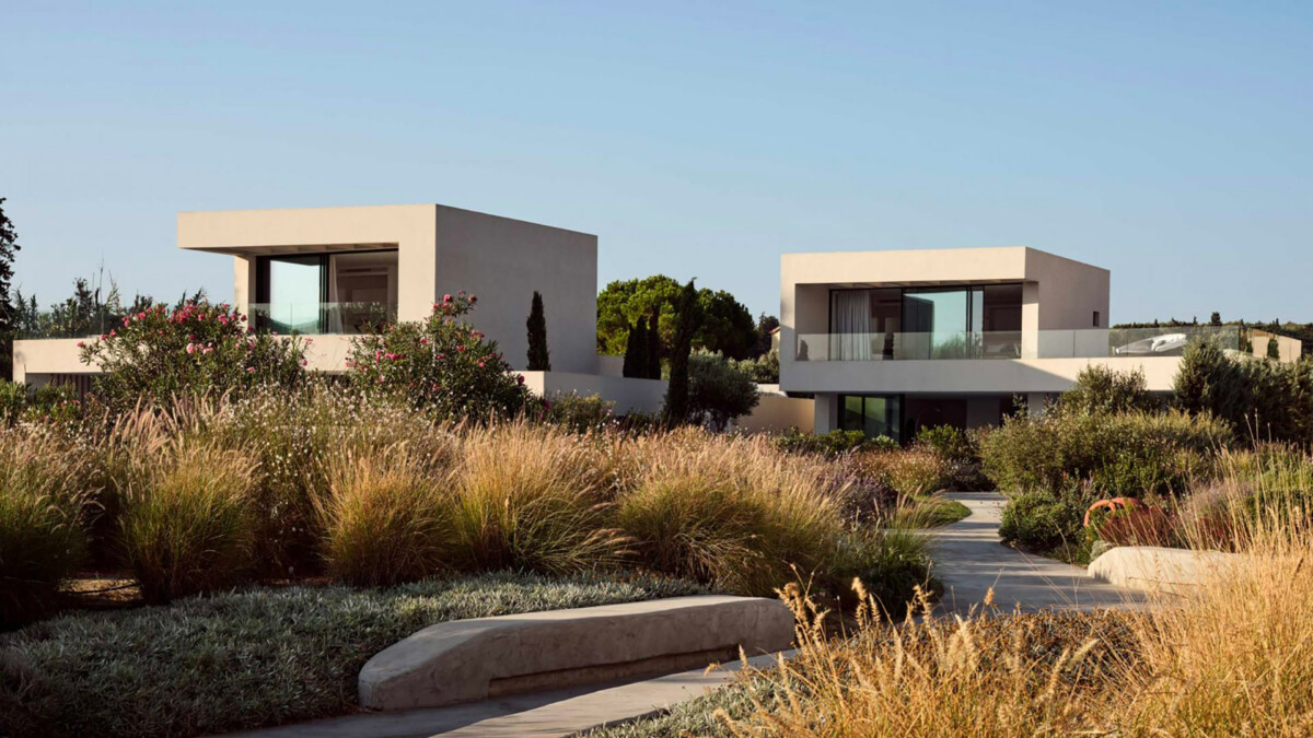 L’ensemble des villas disposent de trois piscines à débordement chauffées, de 32 m² (profondeur : 1,8 m) avec hydromassage, entourées de six chaises longues, d’un canapé extérieur semi-circulaire, et d’une table à manger. Un espace de repos extérieur creusé avec un foyer permet de profiter pleinement des soirées étoilées. Les villas offrent une vue magnifique sur la mer et comprennent un étang aux nénuphars dans le jardin avant, ainsi qu’un chemin privé menant directement à la plage. Deux places de parking sont à votre disposition.