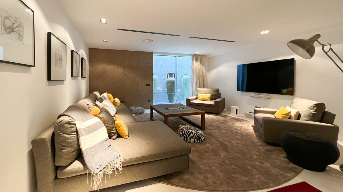 Vous apprécierez le grand salon (avec espace de repas et accès à la terrasse), la cuisine entièrement équipée (avec îlot central) et la magnifique salle de télévision (avec Apple TV, Netflix et système de son professionnel). La villa dispose également d’une buanderie équipée et d’une connexion WiFi haut débit dans toute la maison.