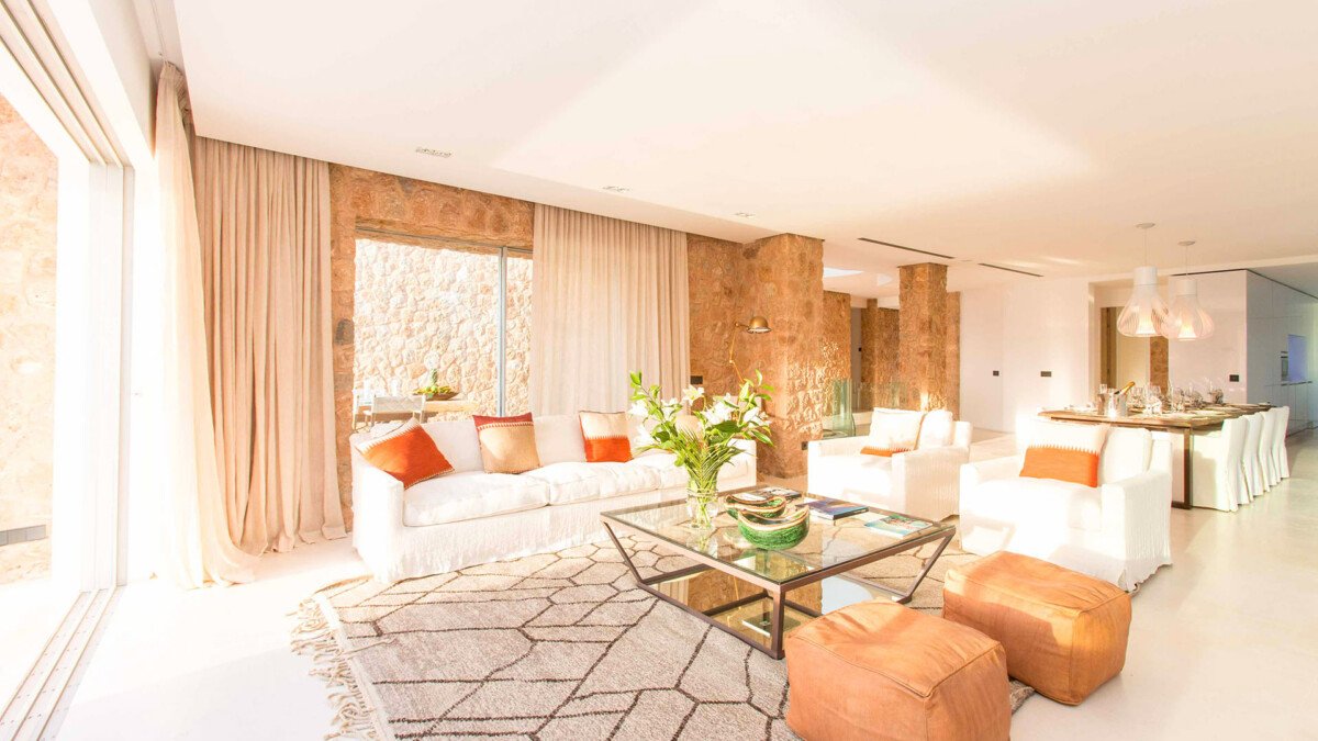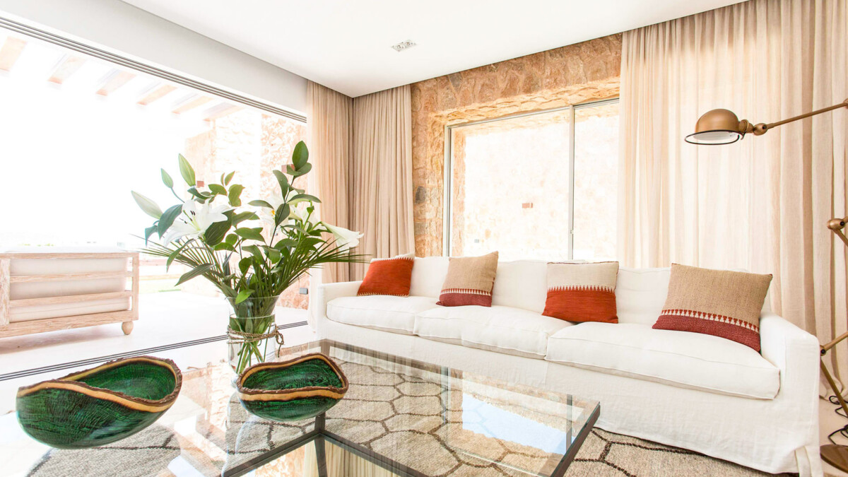 Caldonia est une belle villa située dans une urbanisation en bord de mer, qui se trouve à proximité de l’une des dix baies les plus spectaculaires de la Méditerranée. Cette copropriété, composée de 32 villas indépendantes, dispose d’un service de sécurité 24H/24 et d’un centre de fitness et de spa. Orientée sud-ouest, l’urbanisation fait face aux plus célèbres couchers de soleil des îles Baléares et se trouve à proximité de la jolie plage de Cala Conta, sans doute la plus belle de l’île avec ses eaux bleues cristallines et sa propre baie adjacente avec accès possible en bateau.