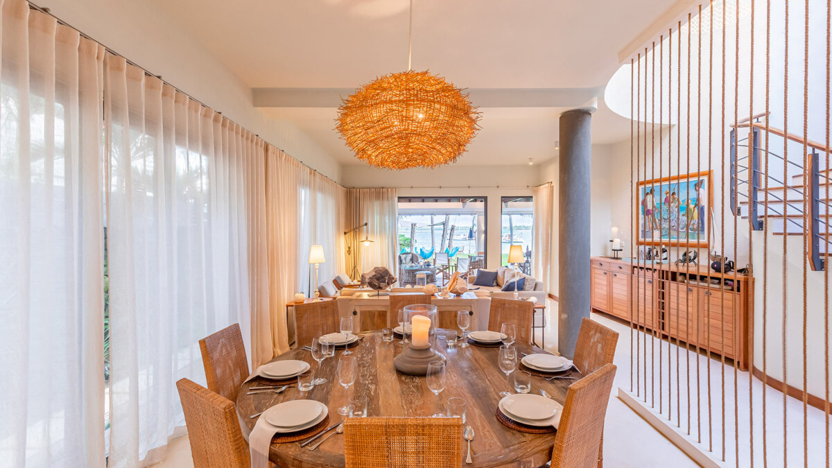 Cambresi est une belle villa contemporaine, qui se trouve les pieds dans l’eau, à proximité de l’authentique village de Trou d’Eau Douce. Idéalement placée sur la plage de sable blanc qui longe le lagon, ce véritable paradis tropical vous offrira la promesse d’un séjour luxueux et relaxant. Grâce à son emplacement, vous pourrez profiter d’une vue imprenable sur l’île aux Mangénis et son lagon bleu turquoise. Les proportions généreuses de cette superbe propriété, ainsi que son jardin tropical dissimulé et sa piscine chauffée, en font une demeure familiale par excellence, idéale pour un séjour convivial et ressourçant.