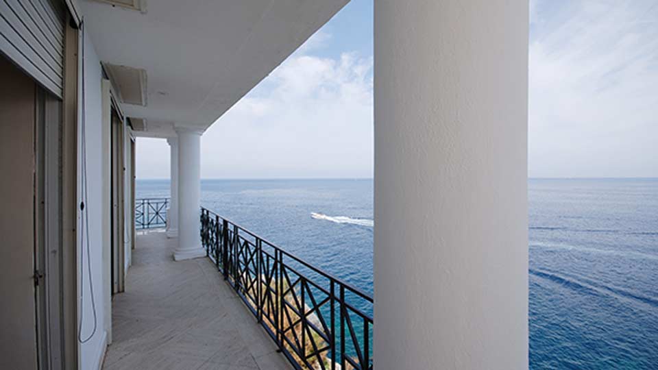 Les grandes terrasses privatives sont agrémentées d’une piscine alimentée en eau de mer et de plusieurs espaces équipés pour se détendre ou manger au-dehors, et l’on accède directement à la mer par un escalier.