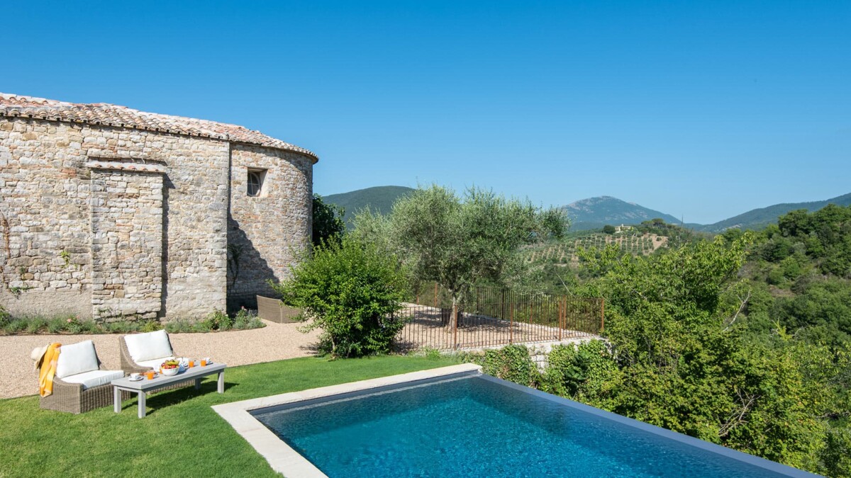 Parfaite pour ceux qui souhaitent se déconnecter le temps d’un séjour, la villa offre un environnement paisible et de merveilleux paysages, ainsi qu’une piscine privée et une église du XIe siècle méticuleusement rénovée, idéale pour les mariages et événements.
