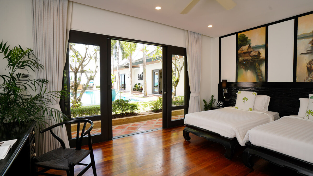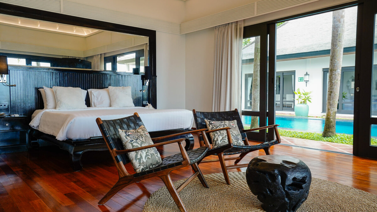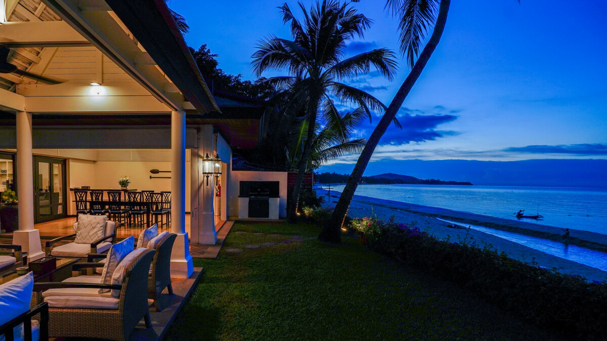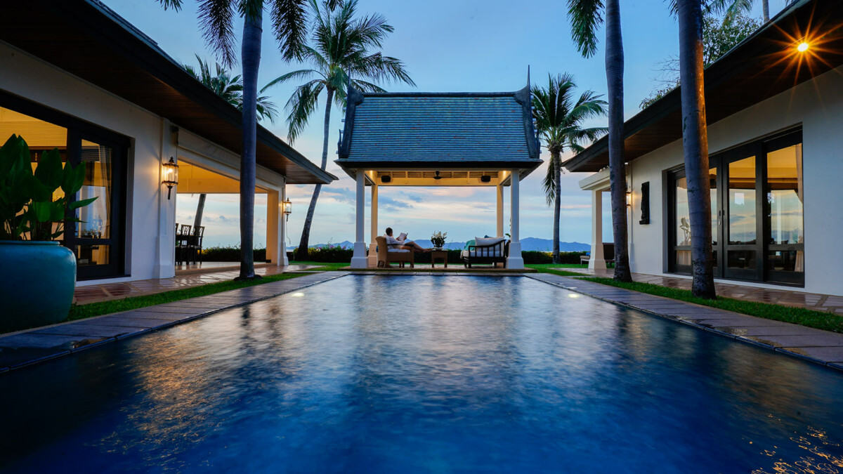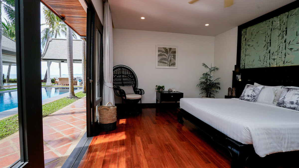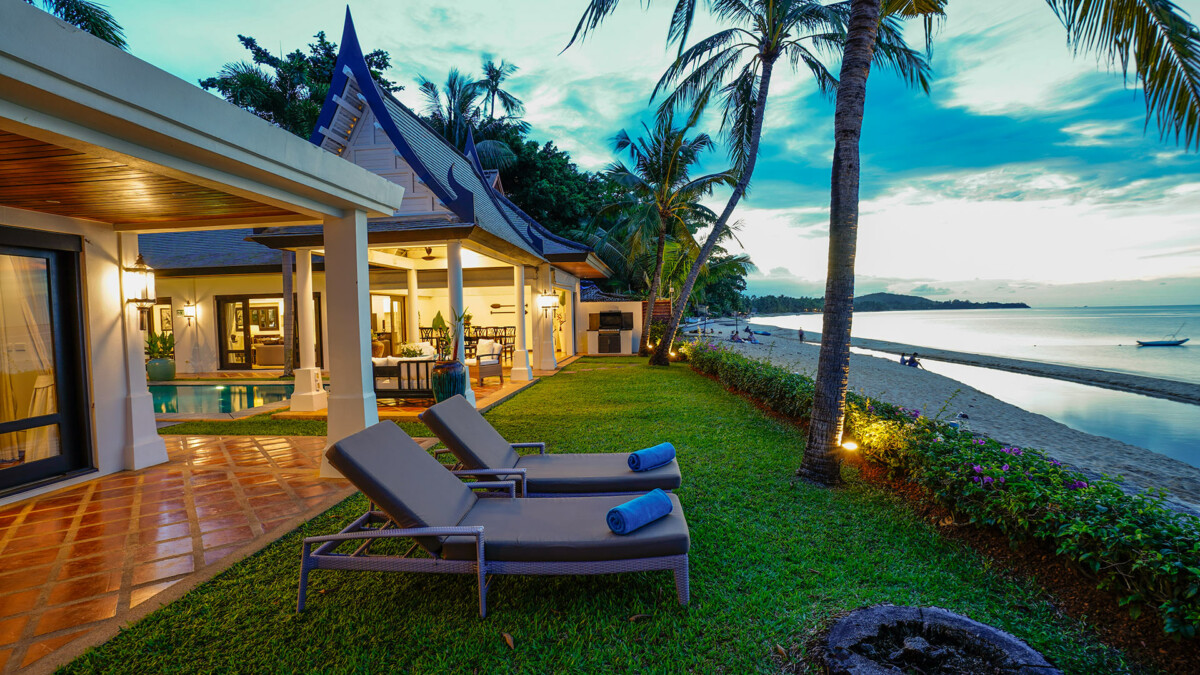 Face à la plage, un espace lounge sous une Sala thaïlandaise traditionnelle est l’endroit idéal pour admirer le panorama.