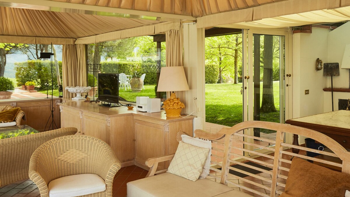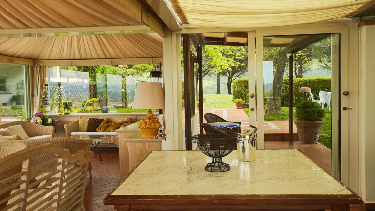 Les vérandas de la villa Christine, toutes surplombant Arezzo et les vallées environnantes, sont d’autres grands espaces totalement habitables: la véranda de jeux avec ping-pong et baby-foot.