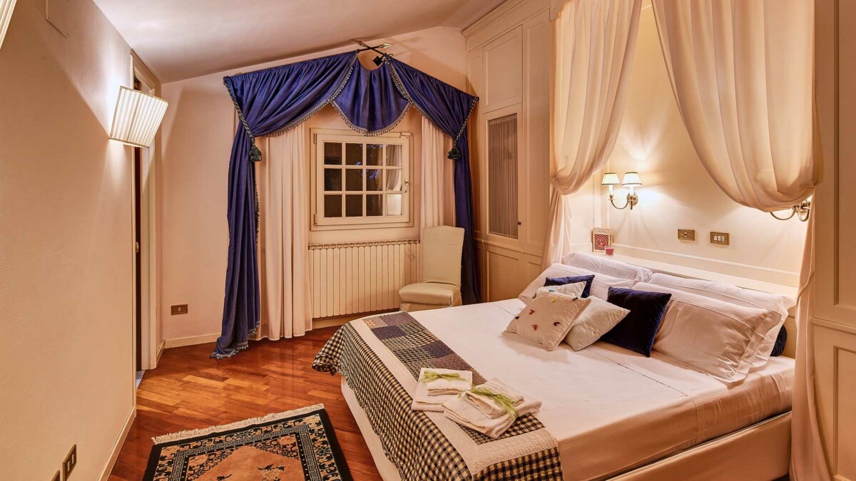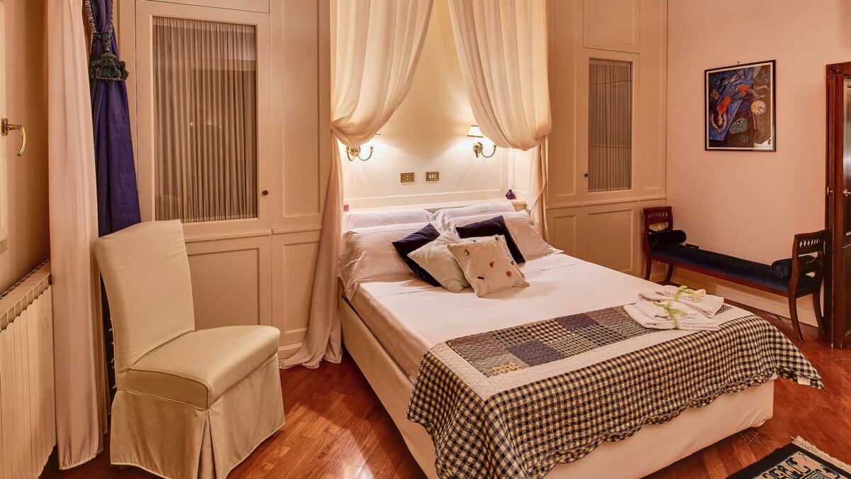 • Chambre 5: lit double. A / C, walk-in, salle de bain privée avec douche, sèche-cheveux et fenêtres donnant sur le parc.