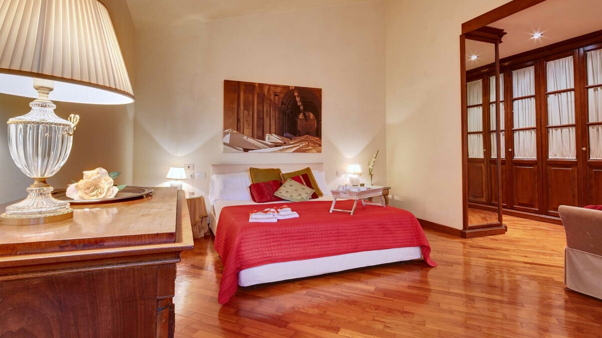 Les chambres sont au premier et deuxième étage de la Villa qui en compte 5 avec lits doubles, toutes très spacieuses, équipées de A / C et grande salle de bain privée avec baignoire ou douche et toutes avec de très grandes fenêtres vue sur le parc.