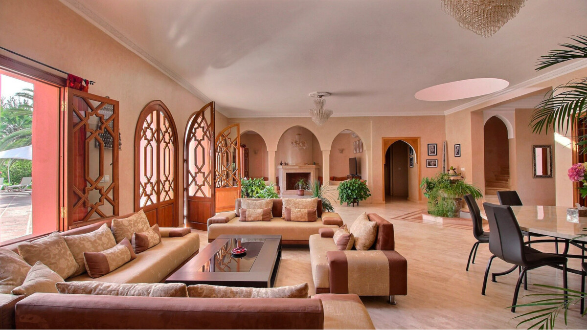 The 6 bedrooms of the villa are spacious and can be complemented with an extra bed for a baby or a child. The villa has a large living room with a space for the TV. The kitchen is separate from the living room.
