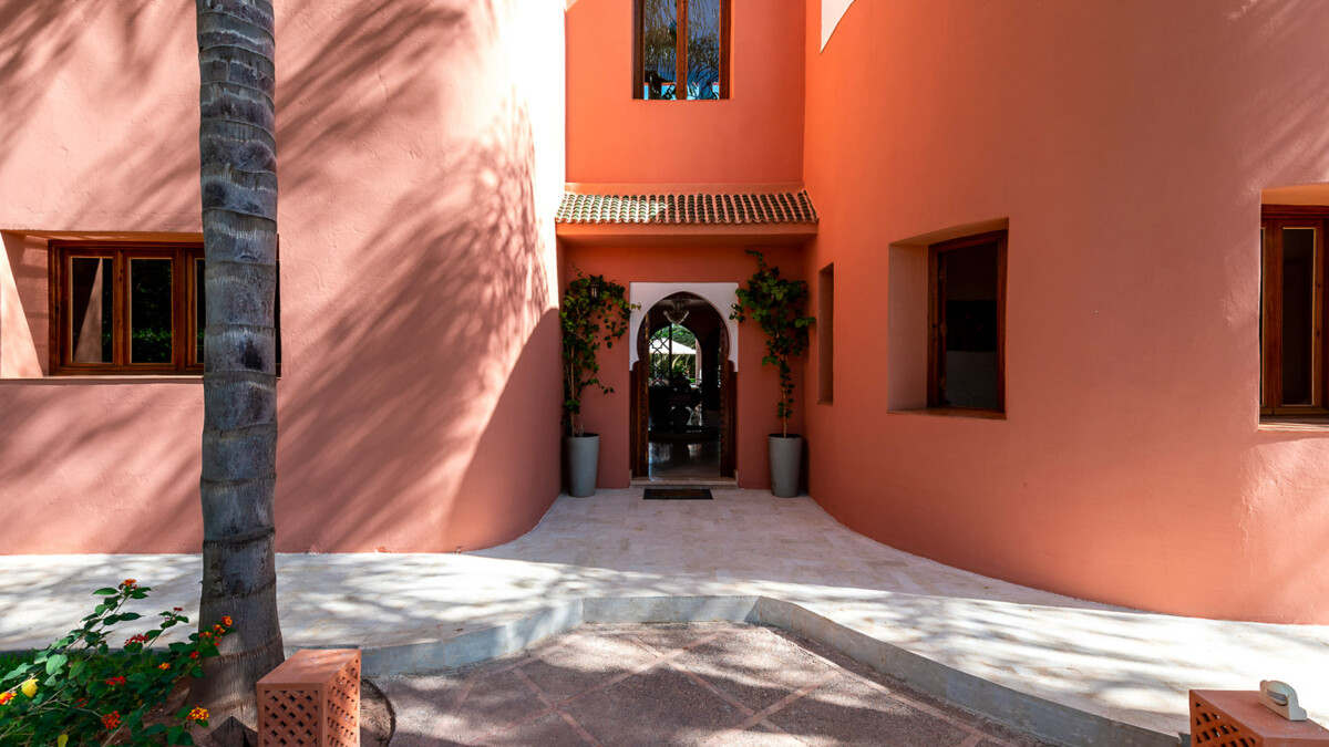 Room. This bedroom has 1 double bed 180 cm. Bathroom private, with bathtub, shower. WC in the bathroom. This bedroom includes also air conditioning, safe, dressing room, private terrace, fan.